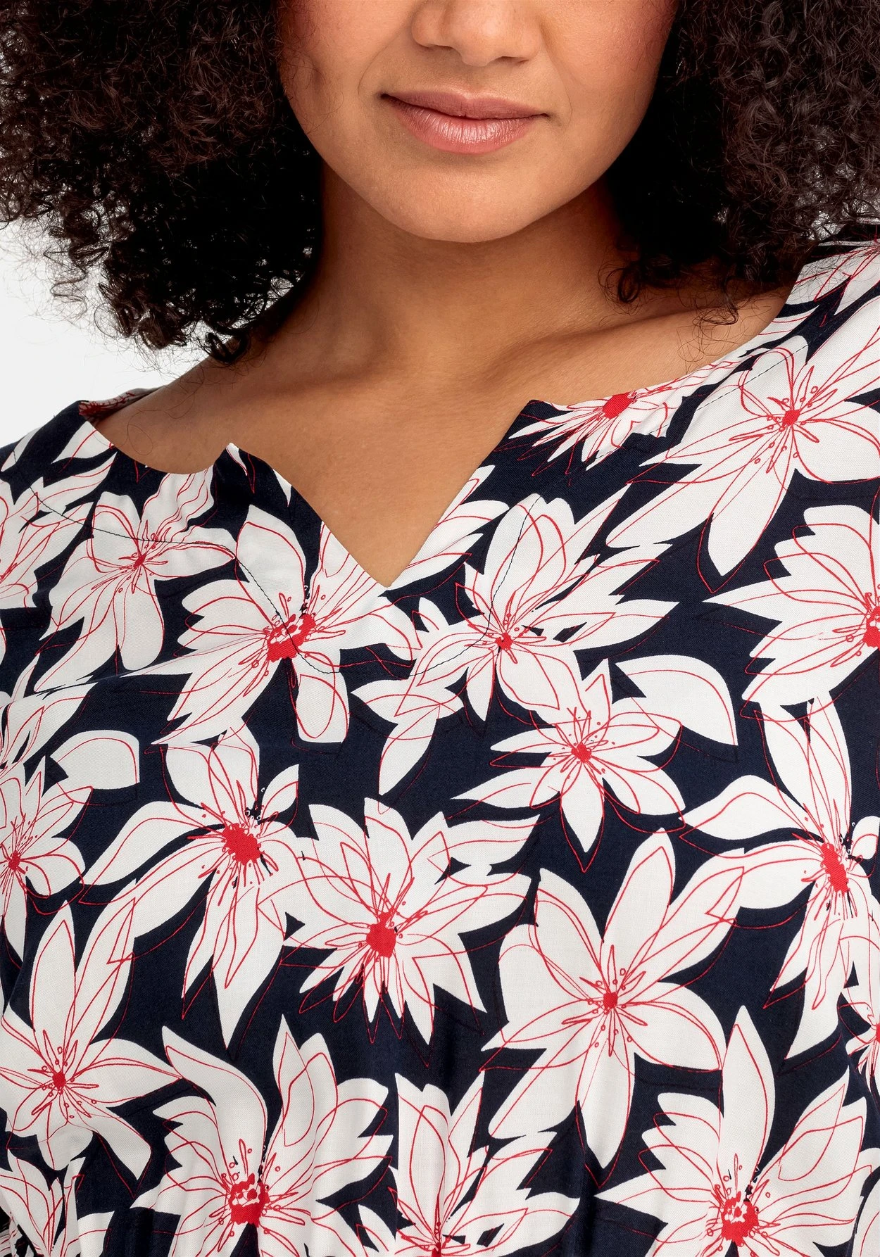 Die Qualität aus LENZING™ ECOVERO™ Viskose fällt weich fließend. Für die Herstellung von LENZING™ ECOVERO™ Viskose werden ausschließlich zertifizierte, nachhaltige Holzressourcen verwendet. Auch der gesamte Produktionsprozess entspricht streng den Richtlinien des EU Öko-Labels. LENZING™ und ECOVERO™ sind Marken der Lenzing AG. sheego cares!