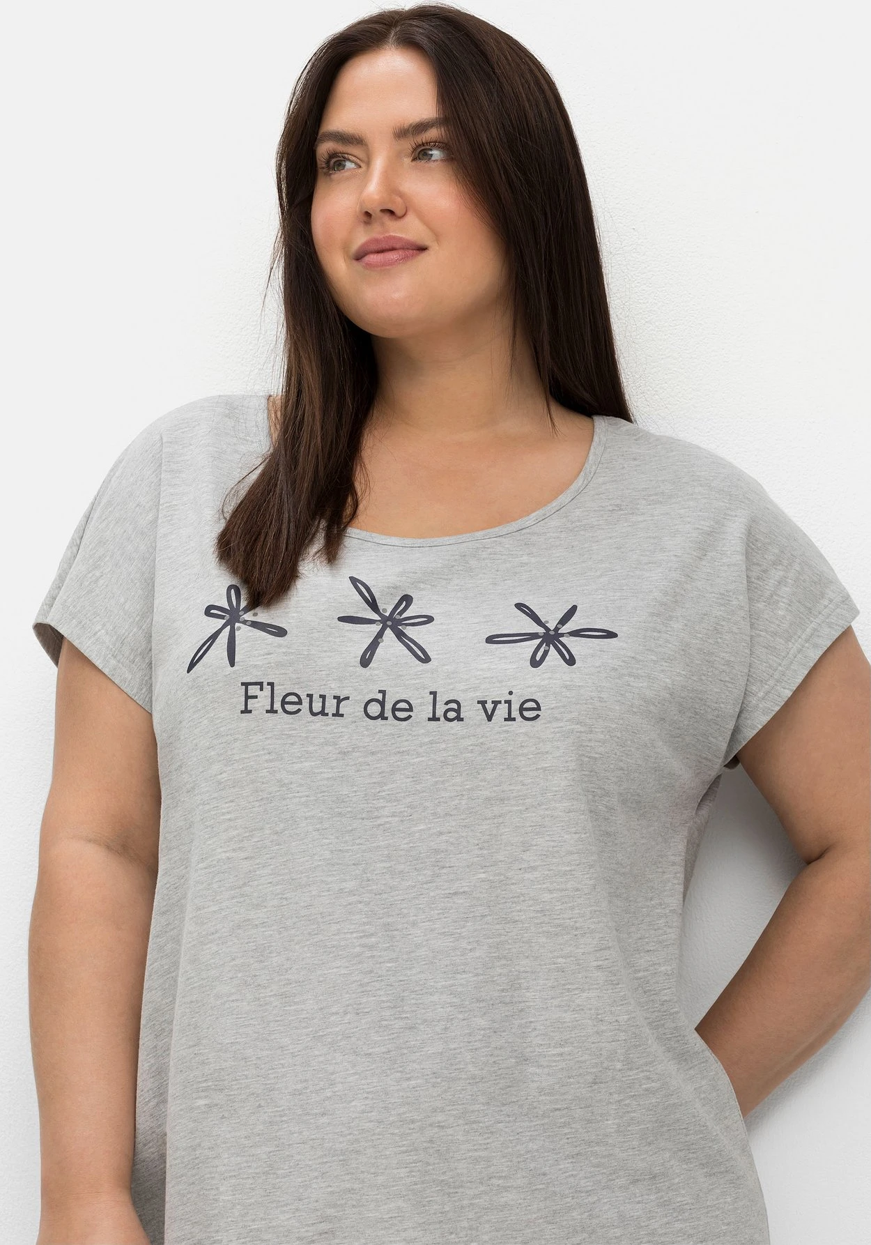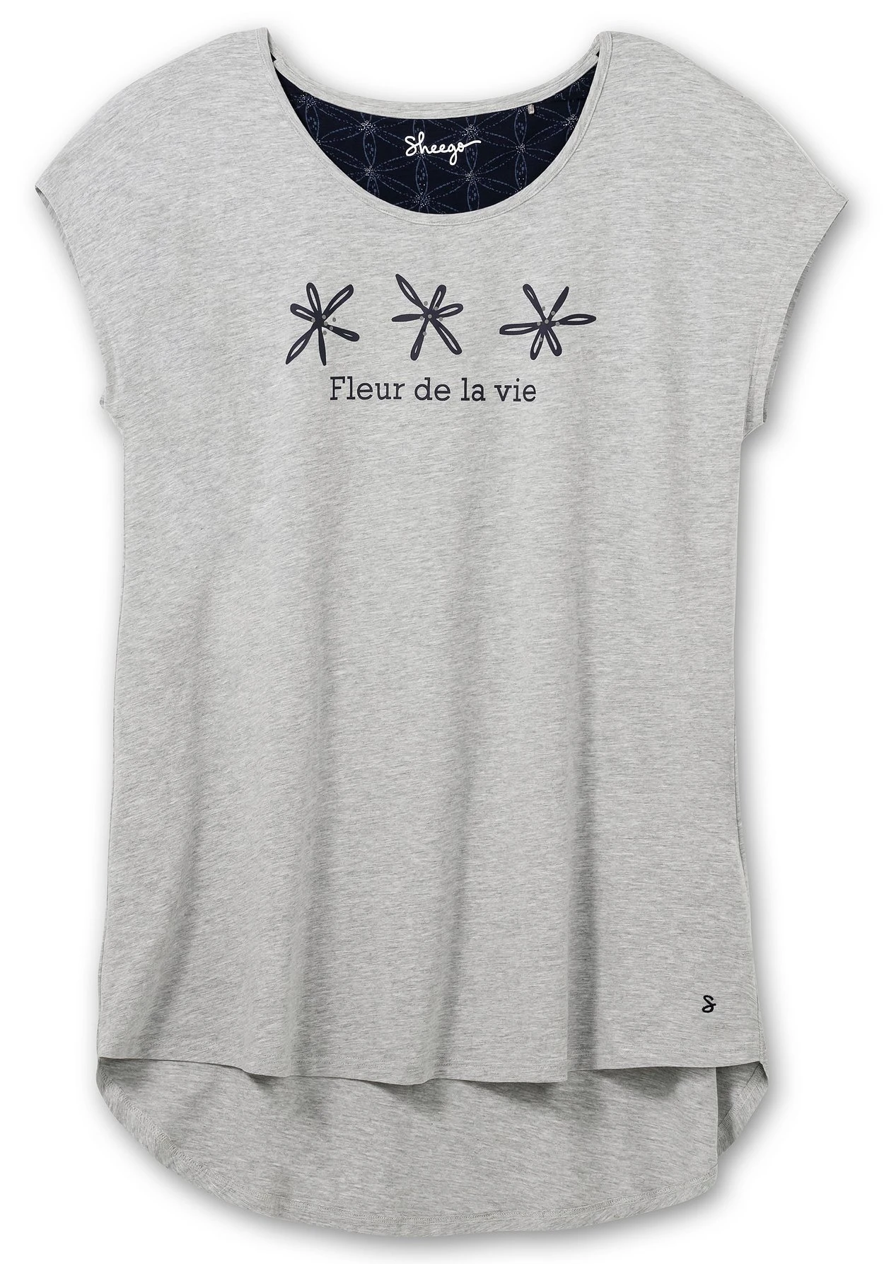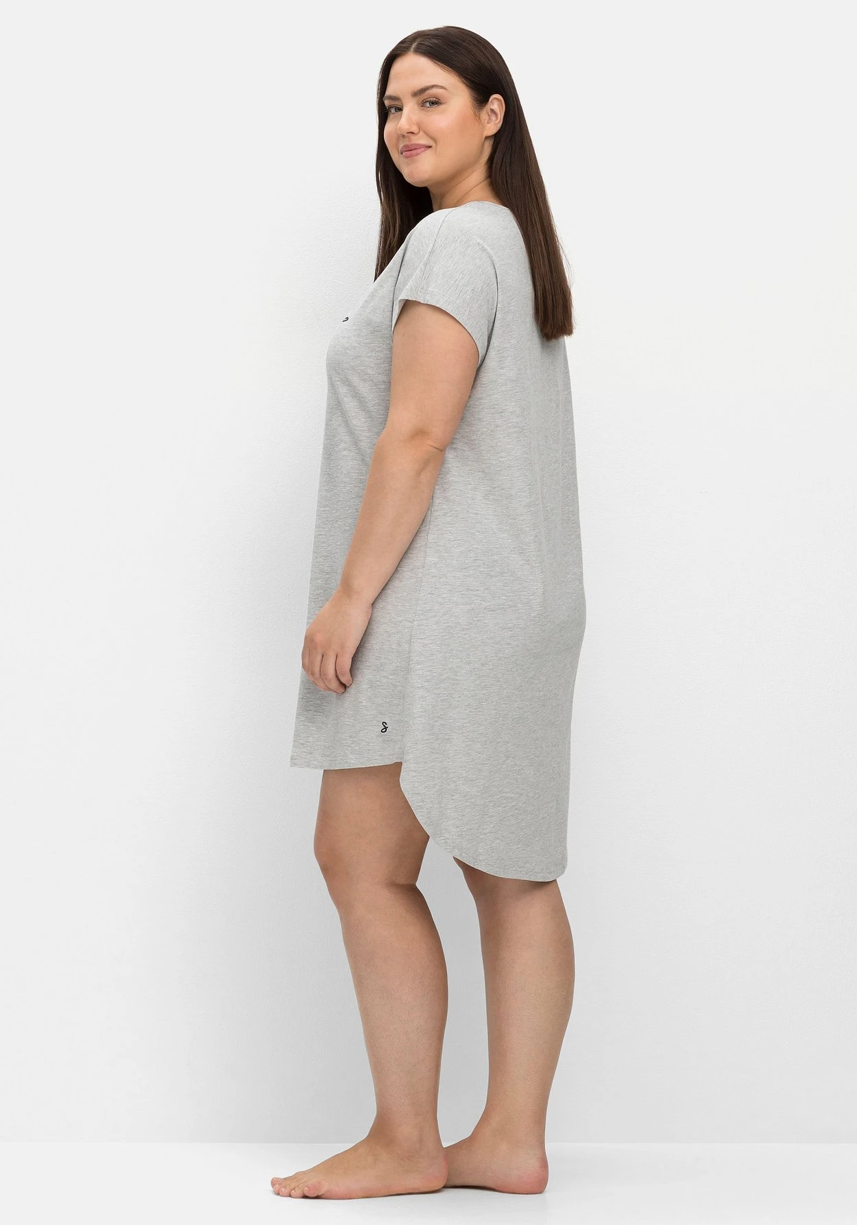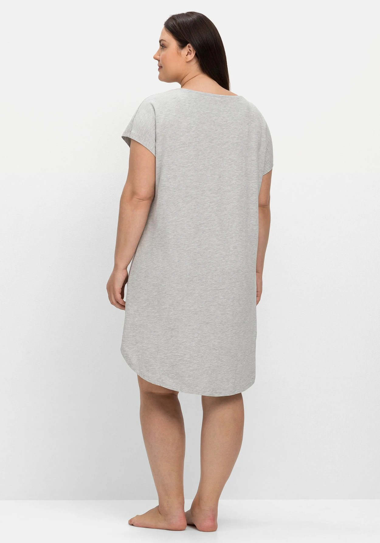 Das Schlafshirt ist angenehm locker geschnitten und besitzt eine kniefreie Länge. Für noch mehr Tragekomfort ist die Rückenpartie um ca. 9 cm verlängert.