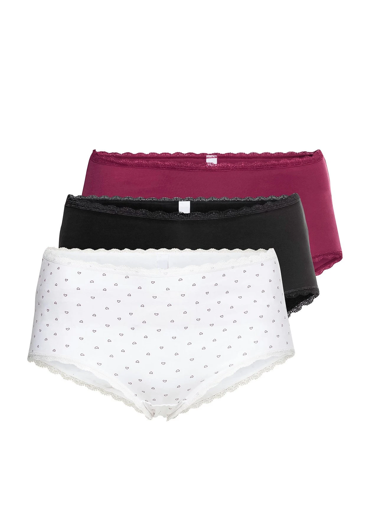 Panty im 3er-Pack in drei verschiedenen Designs. Die moderne Schnittform wird mit dezenter Spitzenkante feminin betont, dabei sorgt der hohe Beinausschnitt für mehr Bewegungsfreiheit.