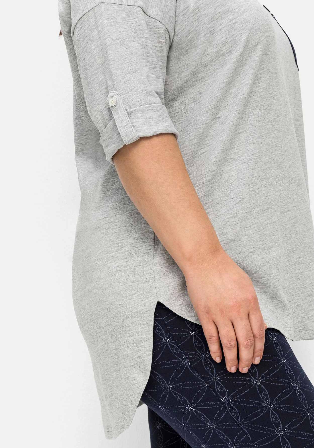 Das lange Shirt sitzt locker und bequem. Durch den Saum, der hinten ca. 8 cm länger ist als vorn, fällt es schmeichelnd über den Po und lässt sich optimal zu den schmalen Leggings kombinieren.