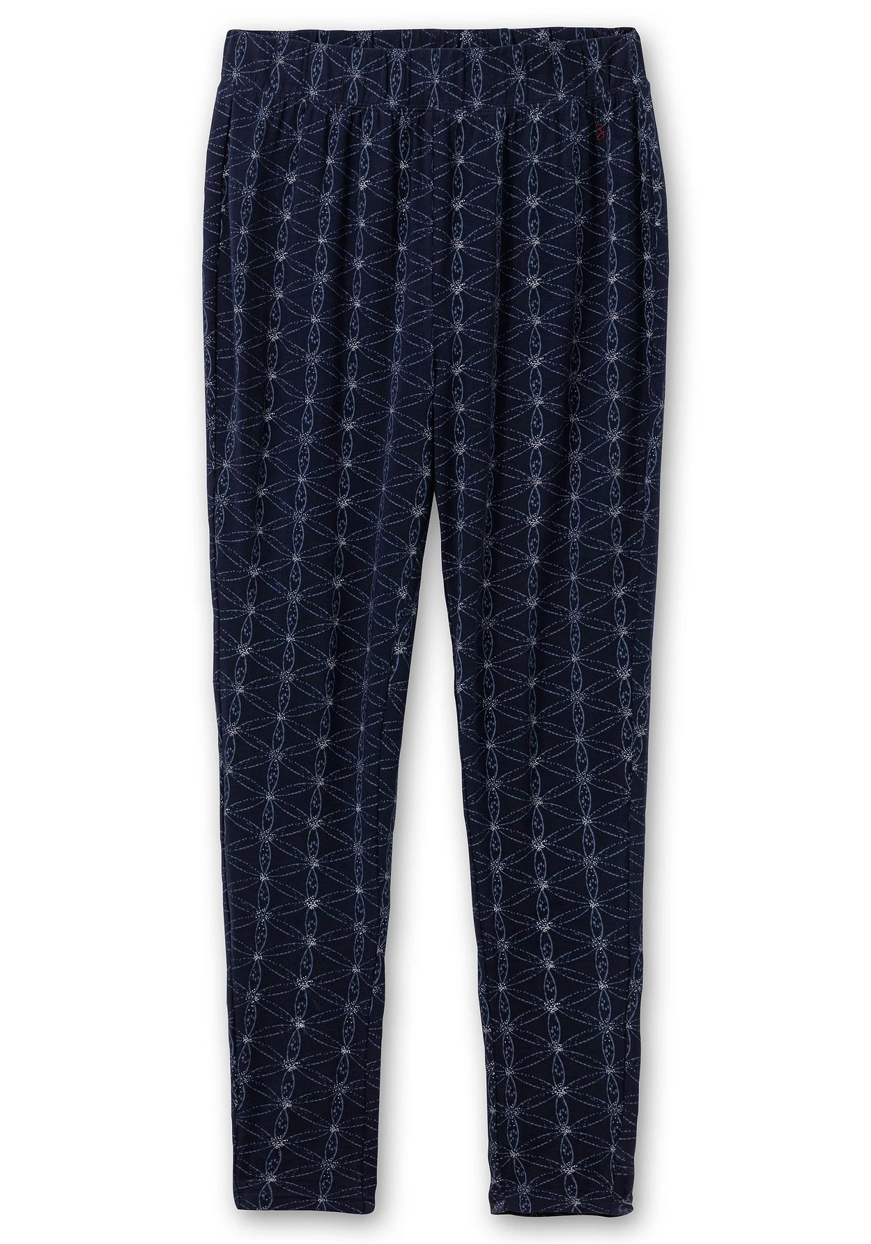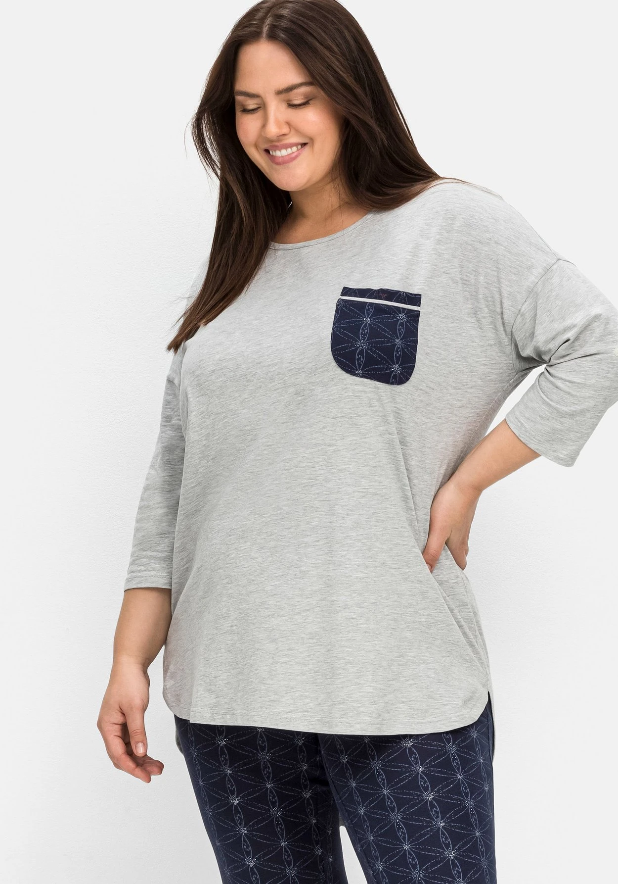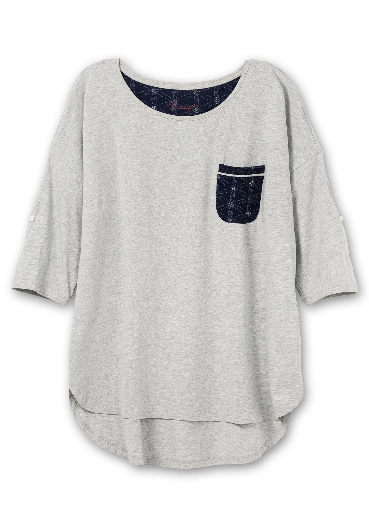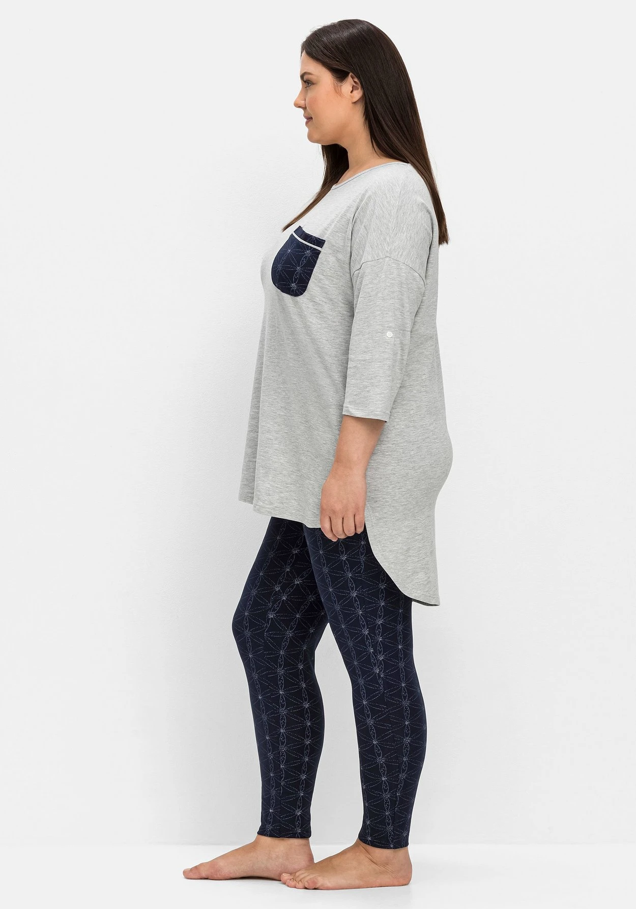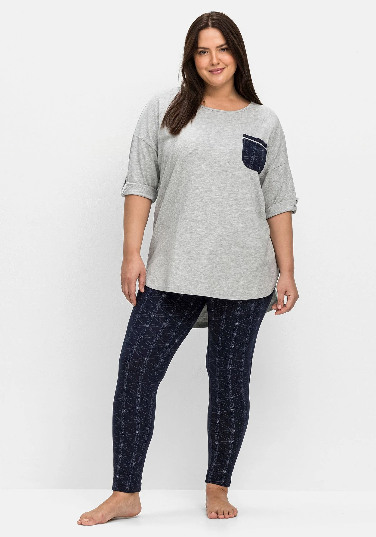 Pyjama-Set aus Schlafshirt und Leggings. Das lässige Shirt ist mit überschnittenen Schultern und gerundetem Saum sowie verlängerter Rückenpartie gearbeitet. Die kontrastfarbene Brusttasche und die langen Ärmel, die hochgekrempelt und mit Riegel und Knopf befestigt werden können, sind dazu eine sportive Ergänzung. Das Homewear-Outfit komplett machen die schlichten Leggings, die durch den elastischen Gummibund besonders bequem sitzen. Als Finish dienen das kleine Metalllabel im Nacken sowie die dezente Stickerei unterhalb des Hosenbundes.