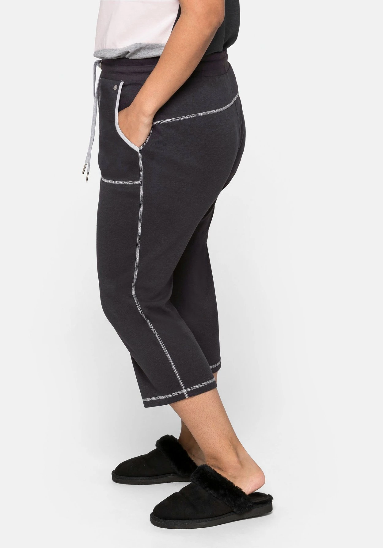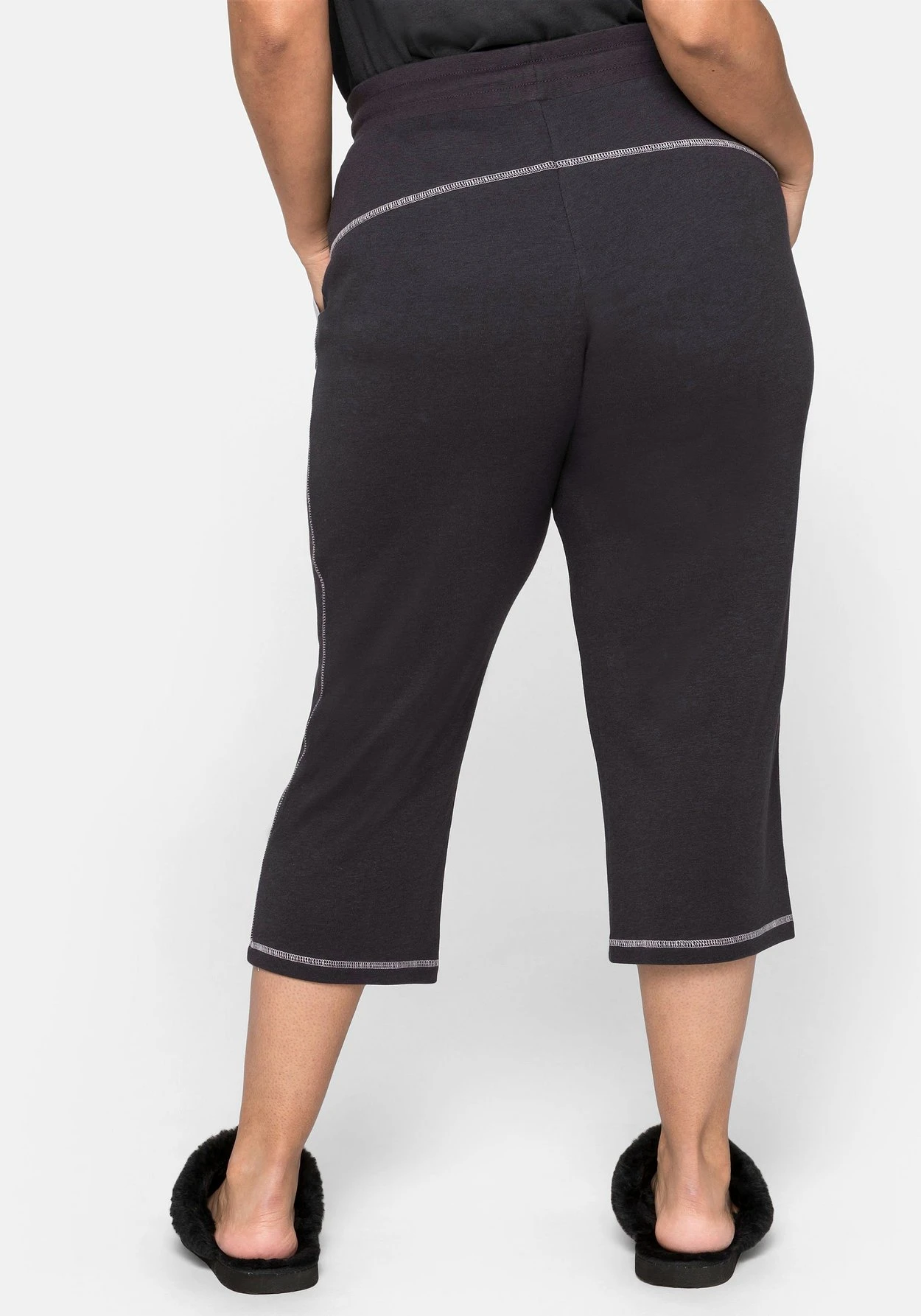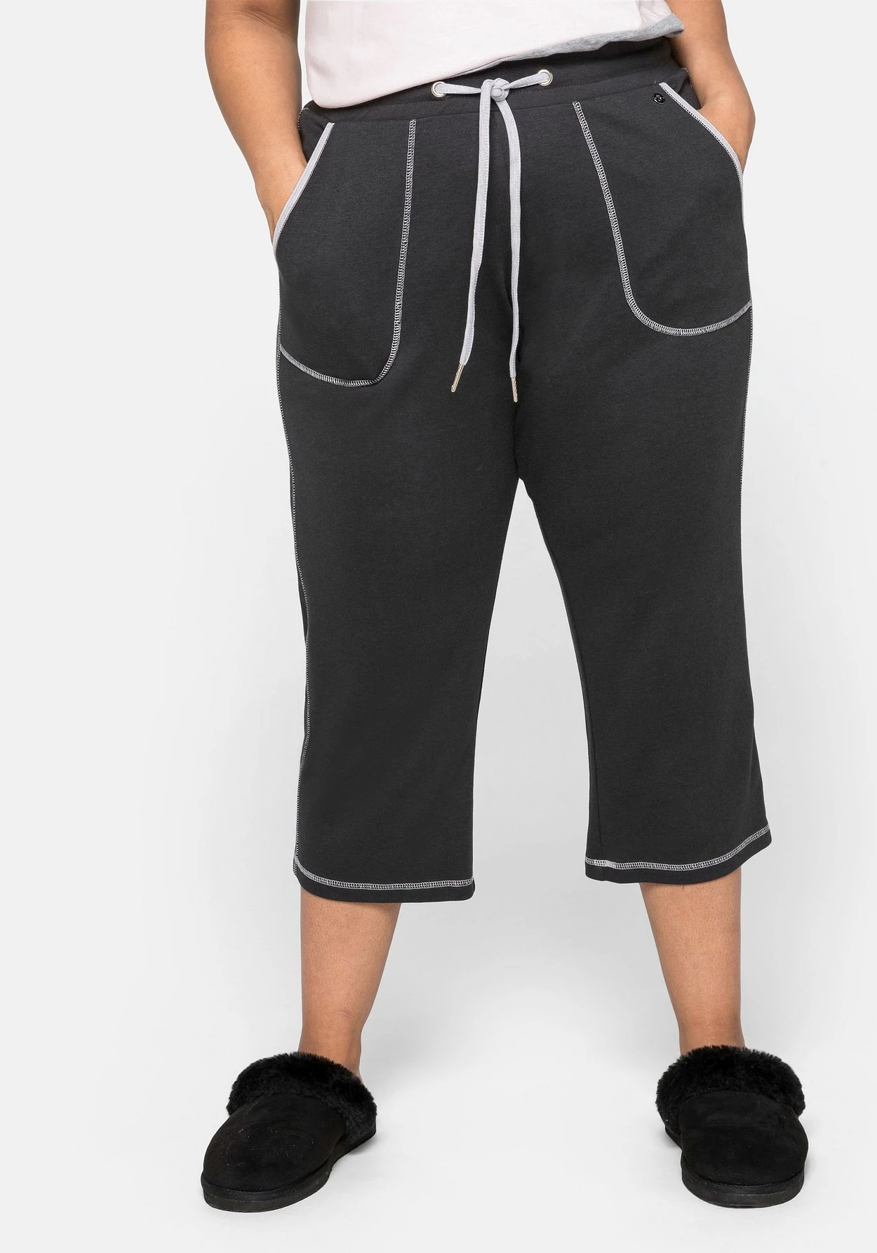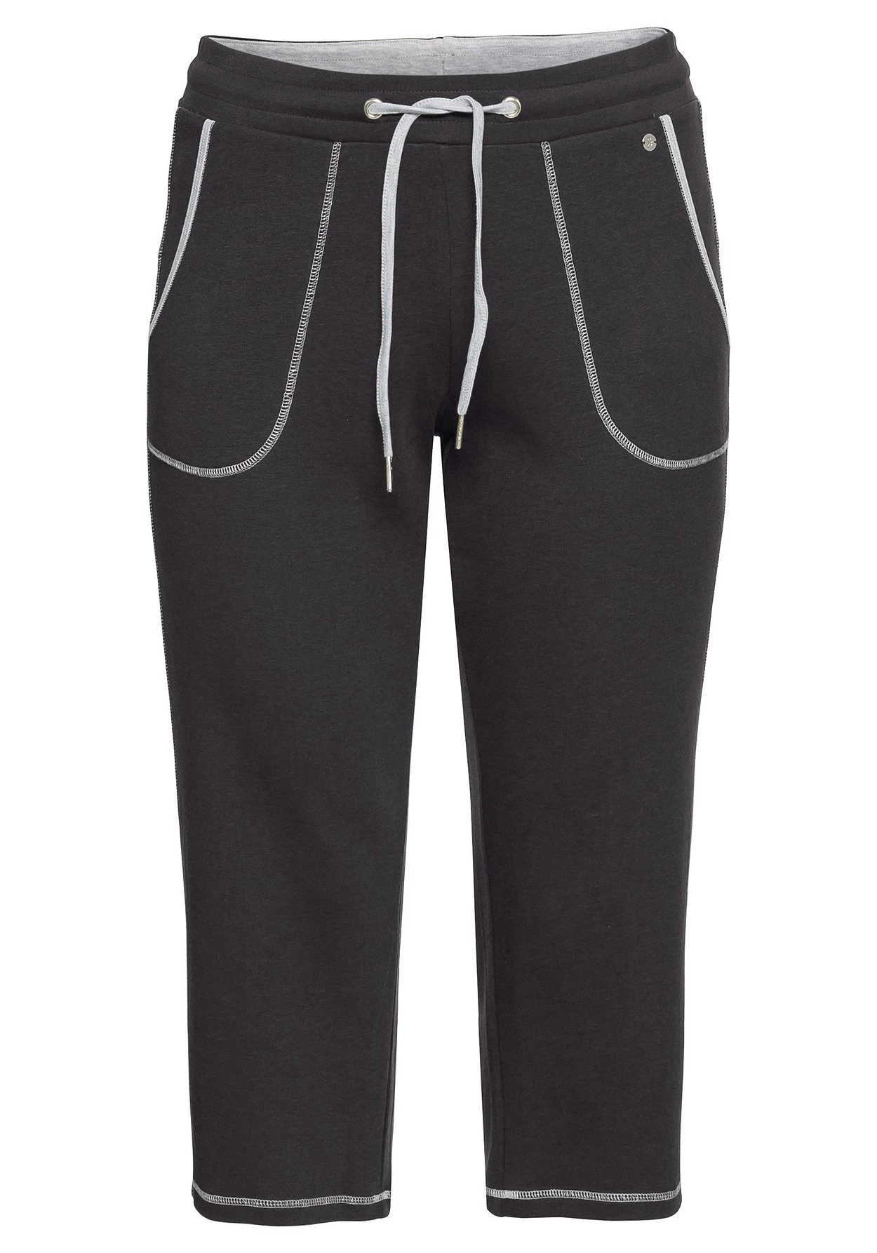 Relax-Caprihose in 3/4-Länge und gerader Schnittform. Für bequemen Tragekomfort sorgt der elastische Gummibund mit weitenregulierbarem, farblich abgesetztem Bindeband. Durch die kontrastfarbenen Details an Innenbund, Ziernähten und Taschenbesatz erhält die Hose ein sportives Finish.