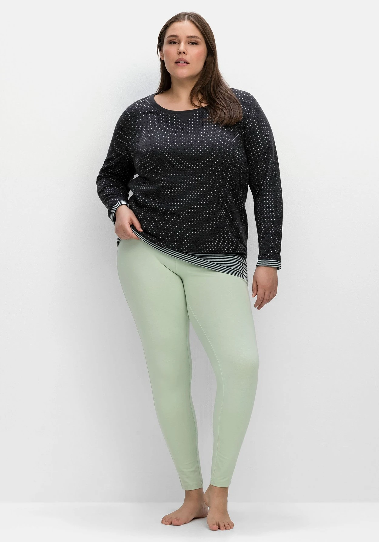 Die Baumwollqualität mit Stretchanteil trägt sich bequem und komfortabel. Zusätzlich ist das Material mit einer Anti-Pilling-Ausrüstung ausgestattet, die Fussel- und Knötchenbildung verhindert. Mit deinem Kauf unterstützt du die Arbeit von „Cotton made in Africa“. Die Initiative leistet Hilfe zur Selbsthilfe durch Handel und will so die Lebensbedingungen afrikanischer Kleinbauern nachhaltig verbessern. sheego cares!