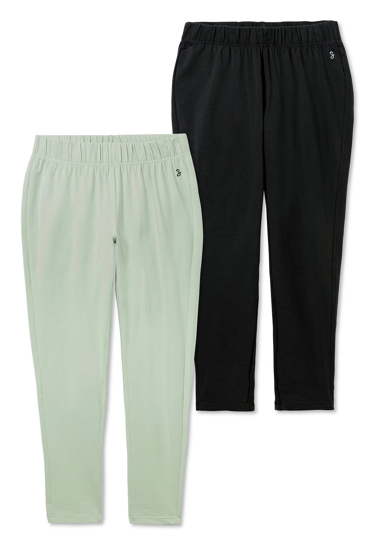 Leggings im Doppelpack. Die Relaxhose sitzt dank ihres Gummizugbundes superbequem. Eine kleine Stickerei unterhalb des Bundes ergänzt den Look.
