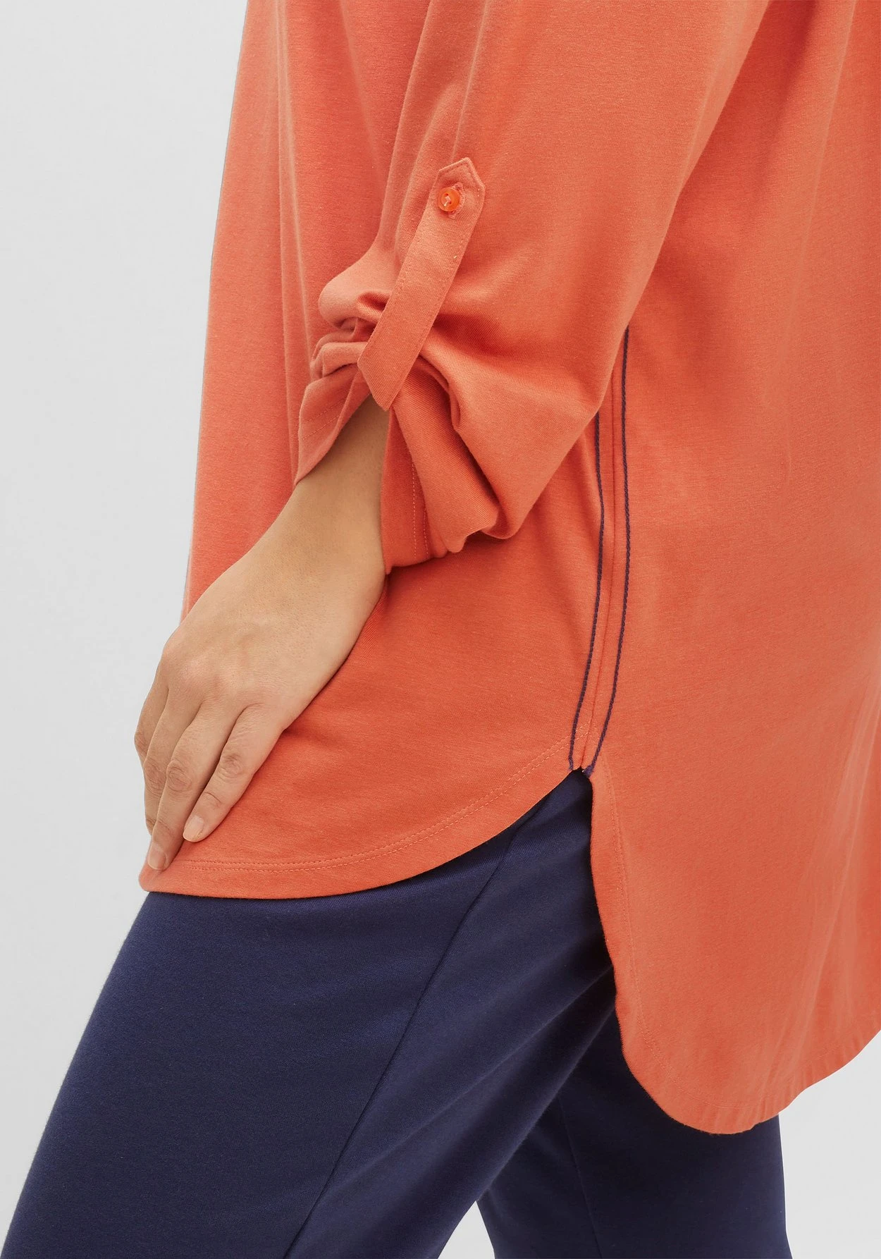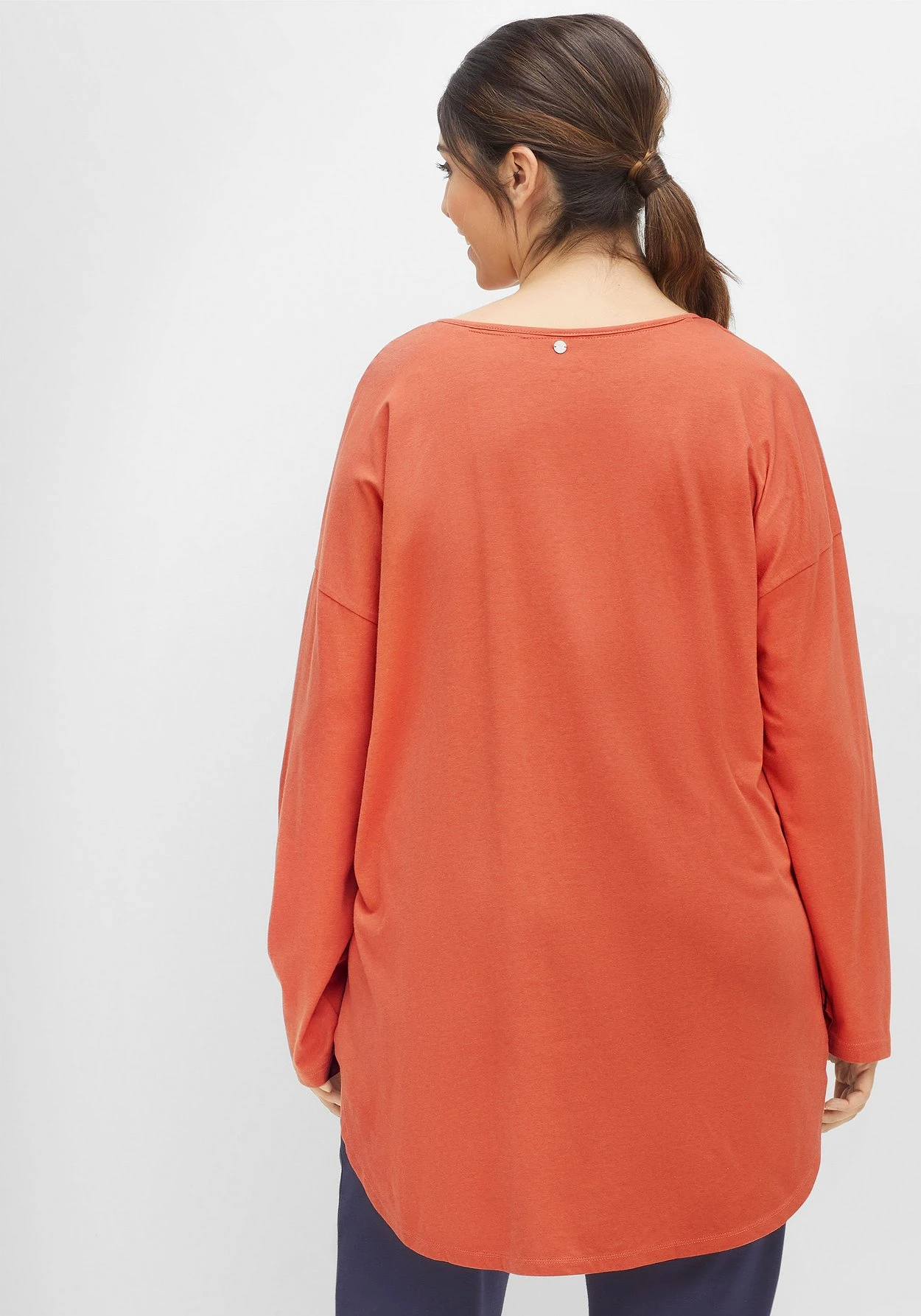 In bequemer, figurumspielender Longform. Der abgerundete Saum mit verlängerter Rückenpartie fällt locker über die Figur.