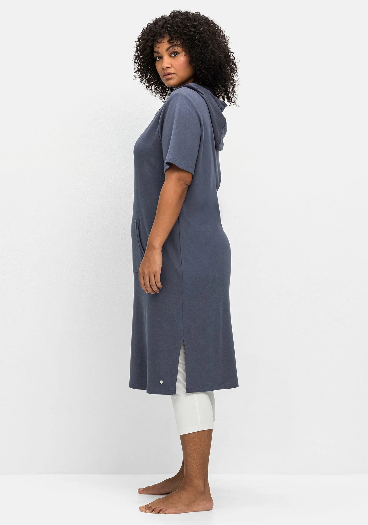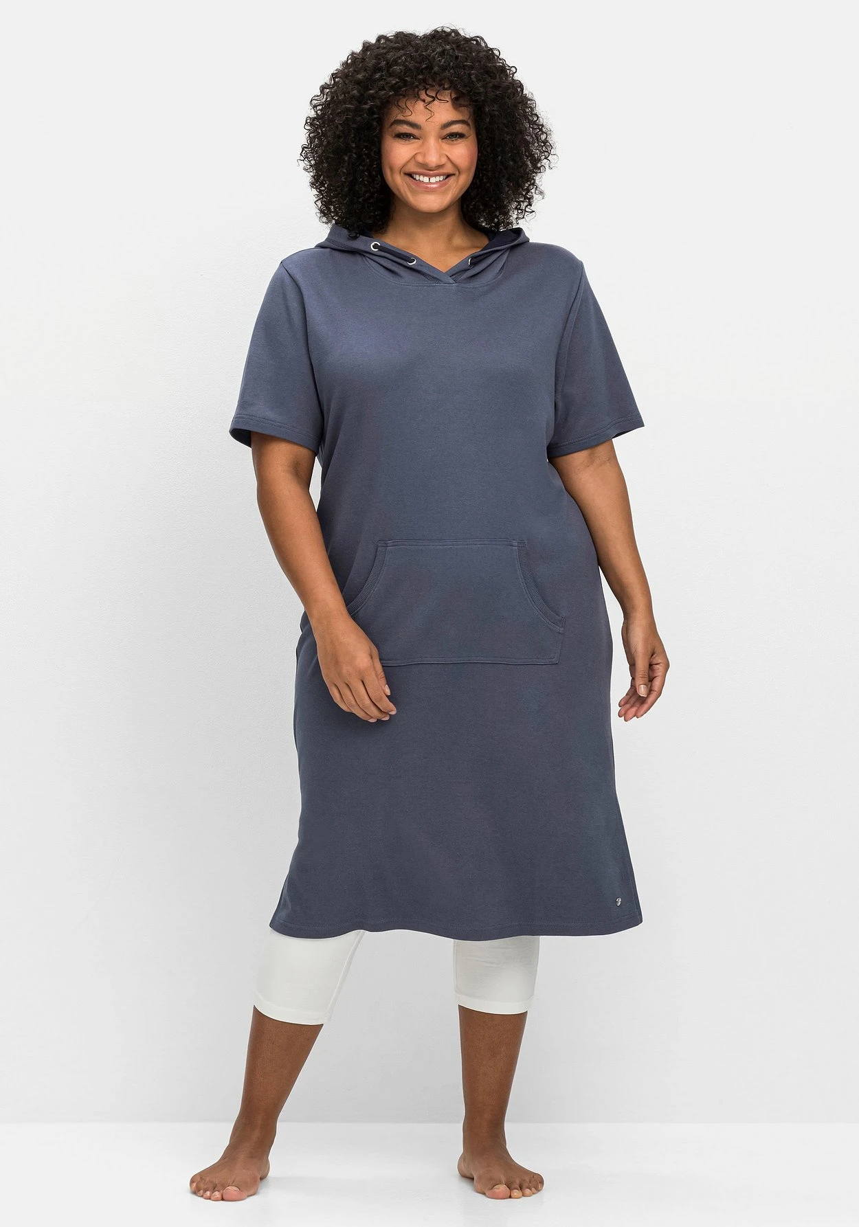 Relax-Shirtkleid mit Kapuze. Die aufgesetzte Kängurutasche unterstreicht die lässig-sportive Optik. Hohe, seitliche Schlitze sorgen für Bewegungsfreiheit und runden den Homewear-Look entspannt ab.