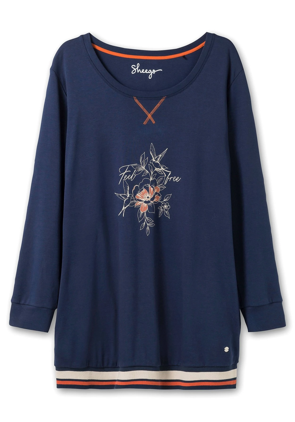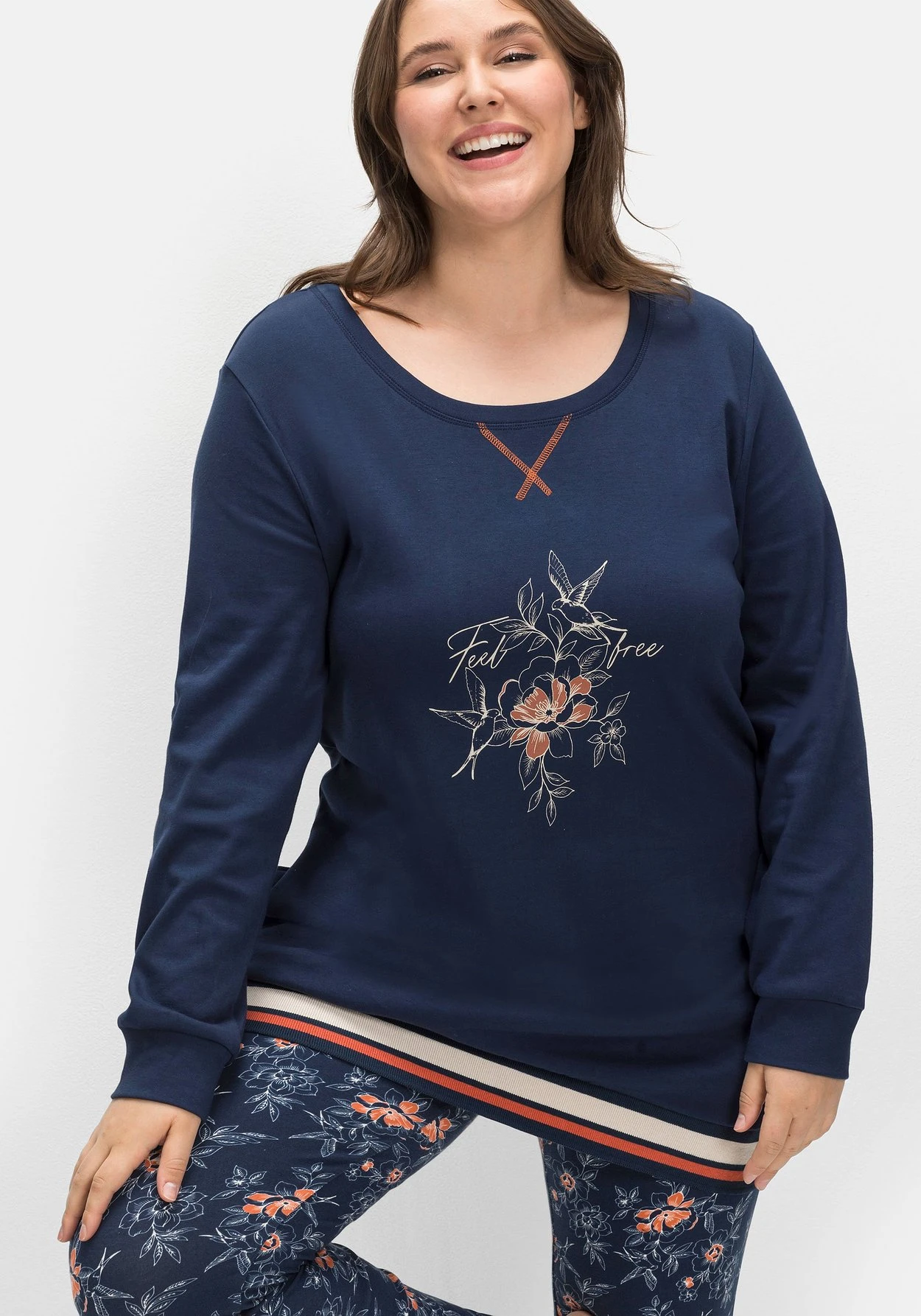 Longsweatshirt zum Relaxen. Ein längerer Schnitt, ein weiter Rundhalsausschnitt und bequeme Eingrifftaschen – das sind die Zutaten für den perfekten Wohlfühl-Look. Feminin abgerundet wird das Lieblingsstück mit einem floralen Druck. Das gestreifte Rippbündchen am Saum bringt dazu frische Abwechslung.