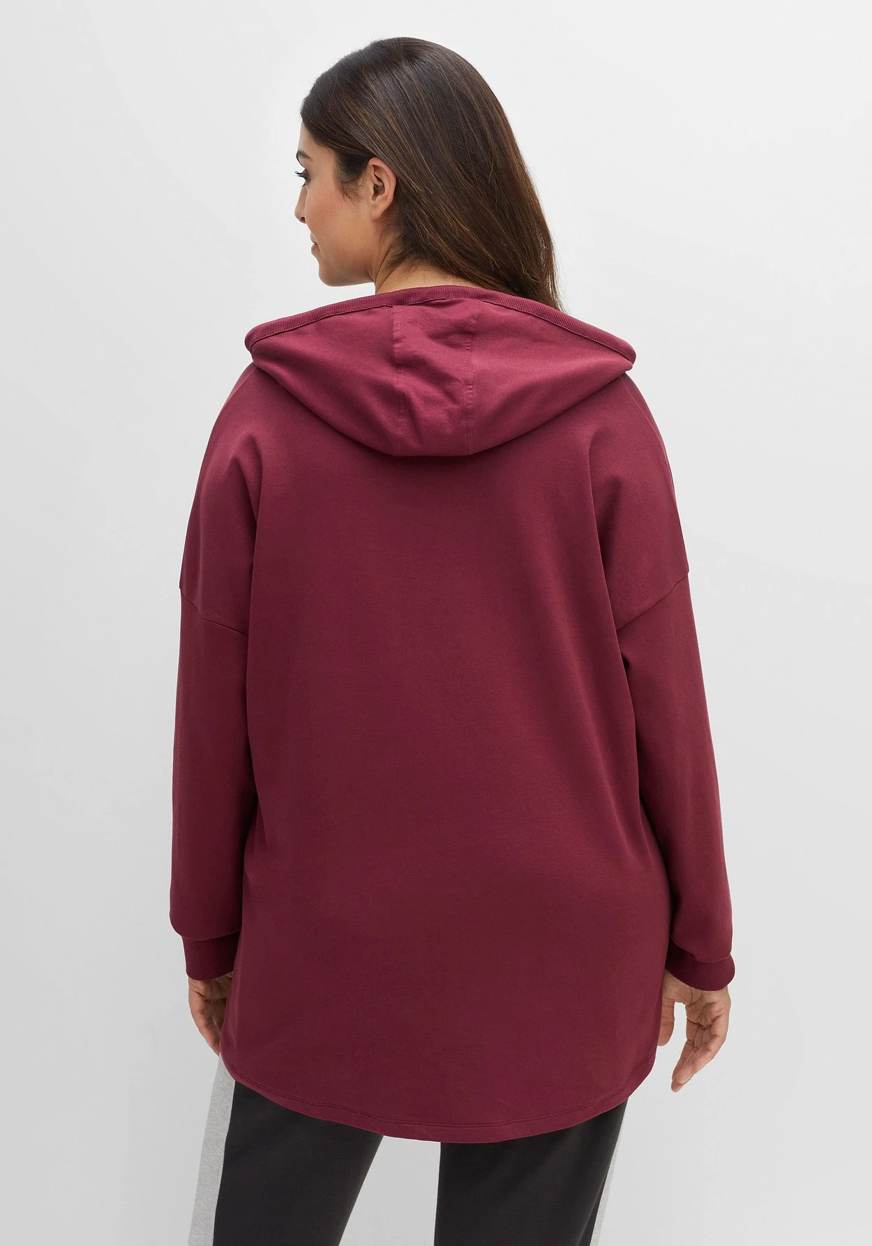 Relax-Sweatshirt in Longform. Im lässigen Hoodie-Style zeigt sich das Sweatshirt mit Kapuze und Kängurutasche. Dabei ist das Innenfutter der Kapuze farblich akzentuiert, Bindebändchen regulieren die Weite. Die lässig überschnittenen Ärmel enden mit bequemen Rippbündchen.