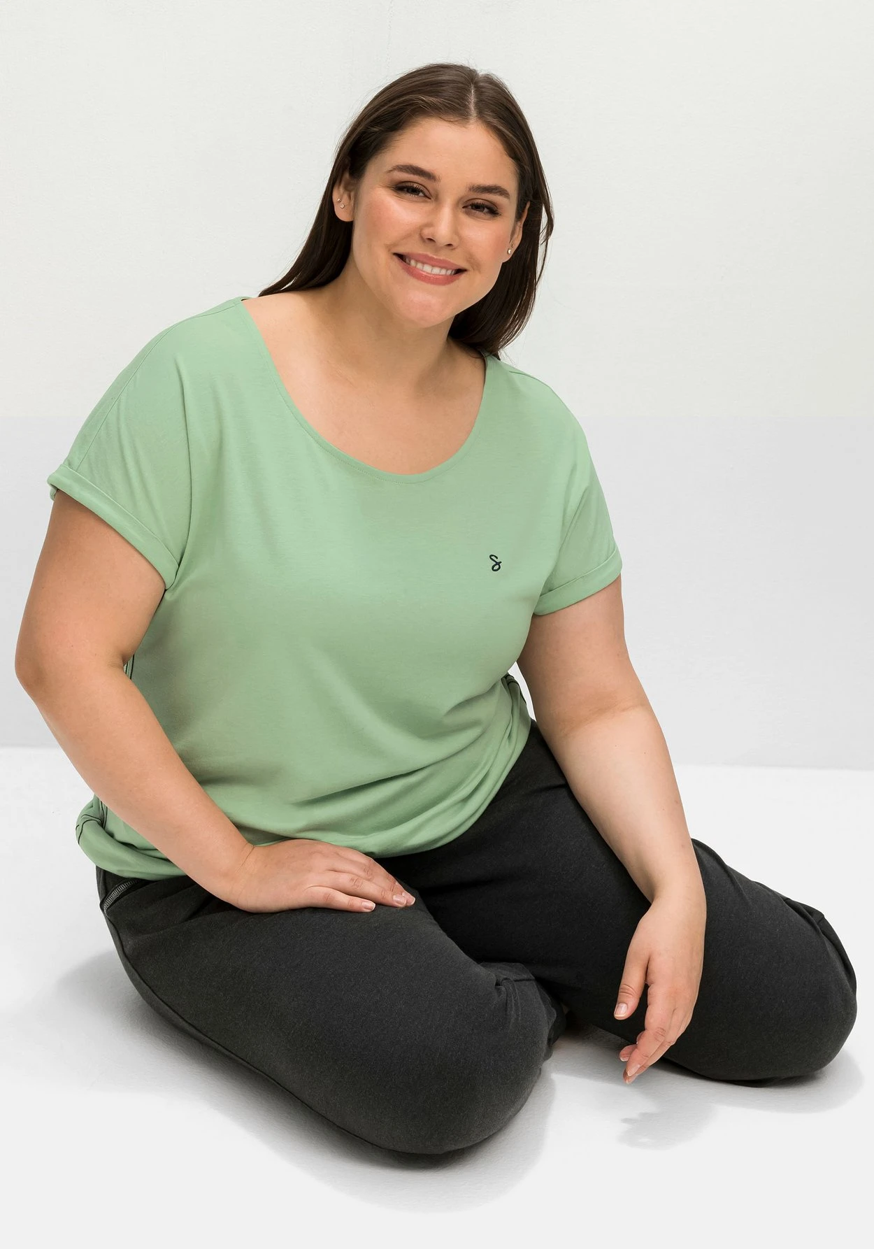Die weiche Interlockqualität aus hautfreundlichem Baumwoll-Mix zeichnet sich besonders durch ihre Formstabilität aus. Die Anti-Pilling-Ausrüstung verhindert Knötchen- und Fusselbildung. Gleichzeitig unterstützt du mit dem Kauf die Arbeit von „Cotton made in Africa“. Die Initiative leistet Hilfe zur Selbsthilfe durch Handel und will so die Lebensbedingungen afrikanischer Kleinbauern nachhaltig verbessern. sheego cares!
