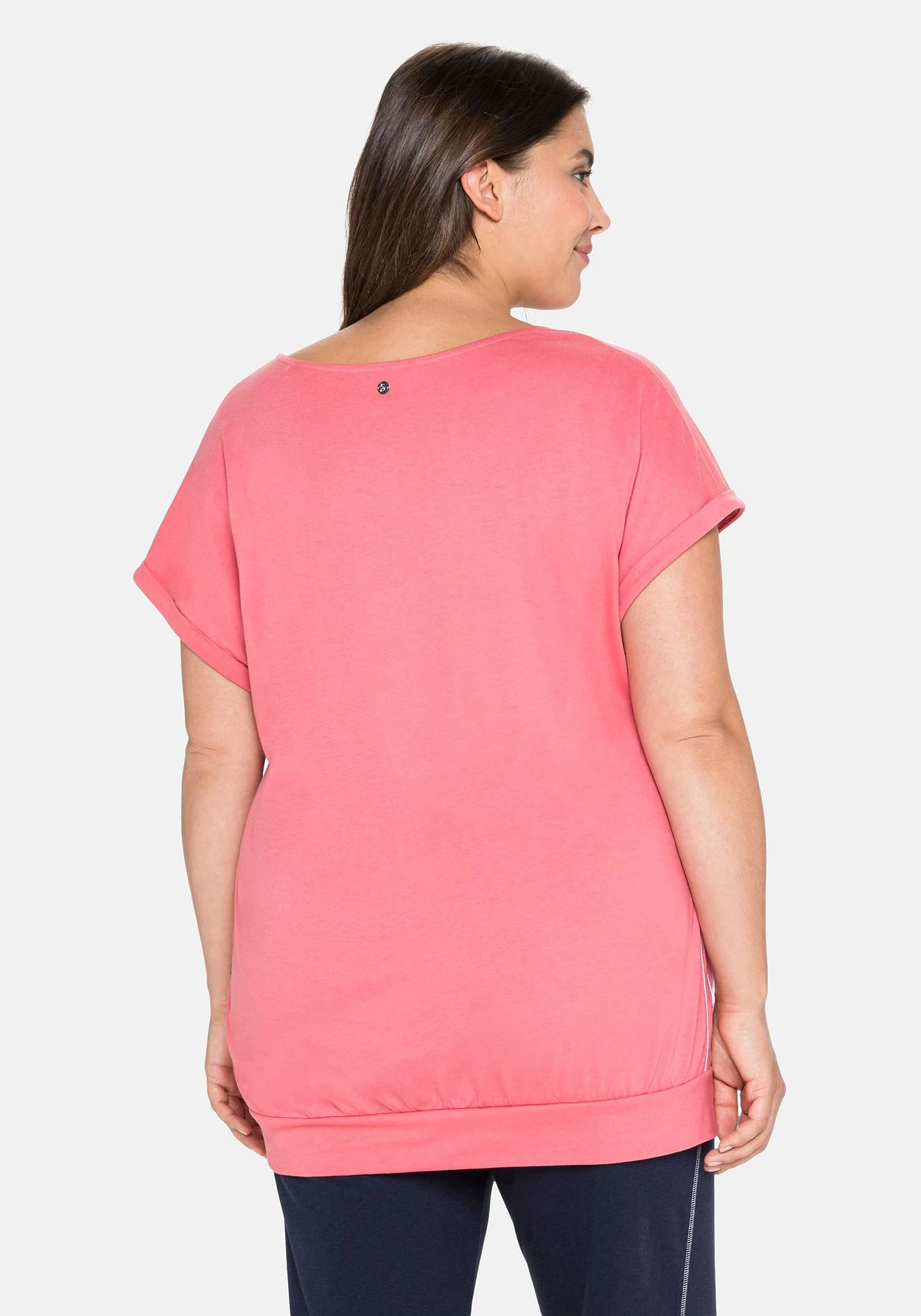 Besonders bequem trägt sich der längere und figurumspielende Schnitt, das elastische Saumbündchen sorgt für einen lockeren Fall und reicht schmeichelnd bis über die Po-Partie.