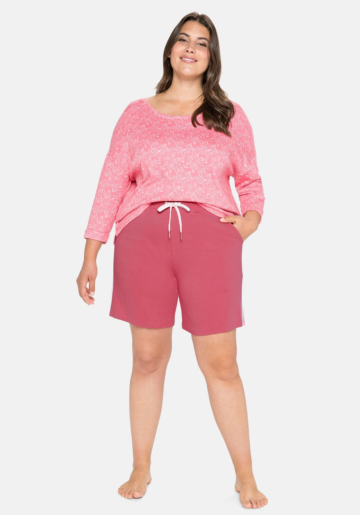 Kurze Relaxhose mit Kontrastdetails. Modische Streifen an der Seite verleihen der Hose den sportiven Look, mit dem kontrastfarbenen Bindebändchen lässt sich der elastische Bund in der Weite regulieren. Praktisch sind die seitlichen Eingrifftaschen. Unser Tipp: Die Loungeshorts lassen sich wunderbar mit anderen Teilen aus der sheego Homewear Kollektion kombinieren!