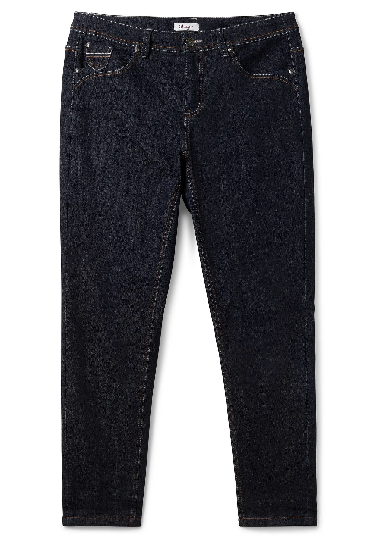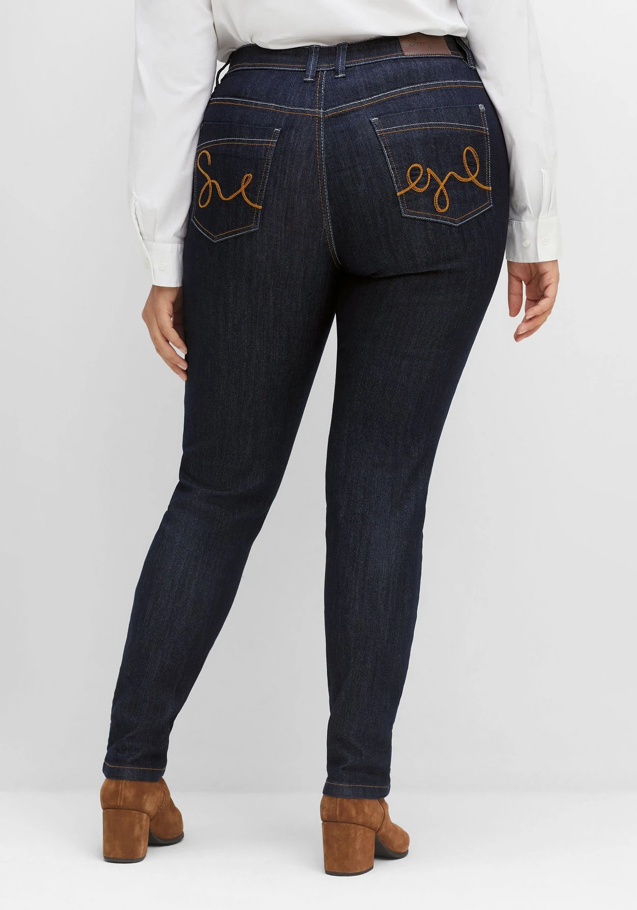 Eine Hose für alle Fälle! Diese schmal geschnittene Stretch-Jeans KIRA von sheego passt mit ihrer dezenten Optik zu fast allen Outfits und Styles. Die zweifarbigen Kontrastnähte und die leichte, individuelle Used-Waschung verleihen der Hose das gewisse Etwas. Innen am Saum befinden sich kontrastfarbene Ripsbänder.