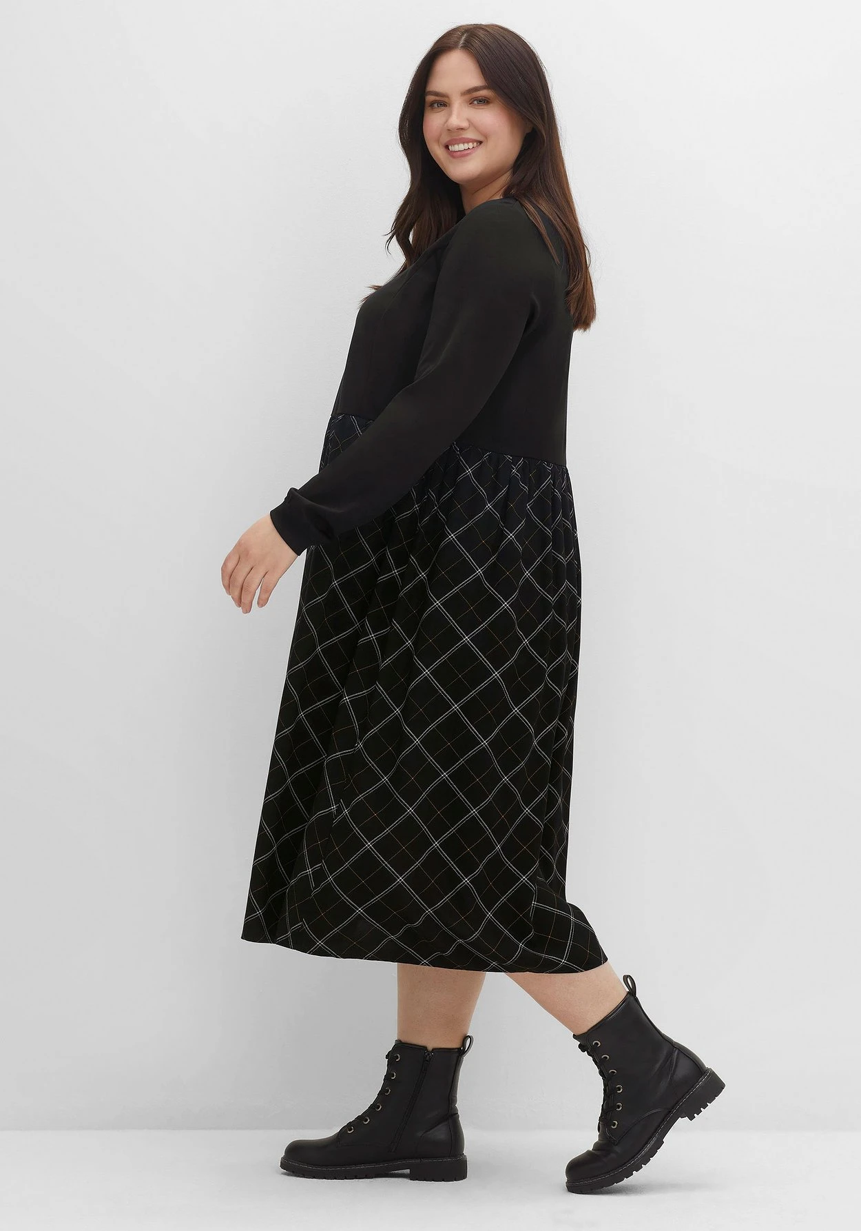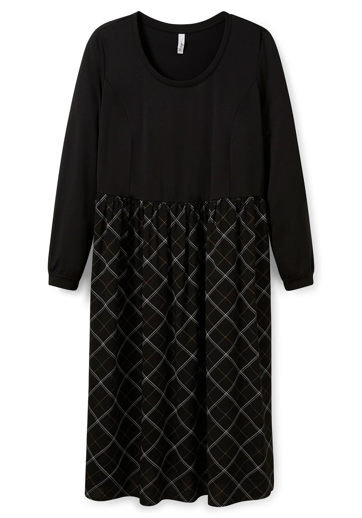 Shirtkleid im Material- und Mustermix. Eyecatcher hier ist der karierte Rock, der zum schlichten, unifarbenen Oberteil einen spannenden Kontrast setzt. Ein klassischer Rundhalsausschnitt sowie lange Ärmel mit schmalen Bündchen ergänzen den Fit.