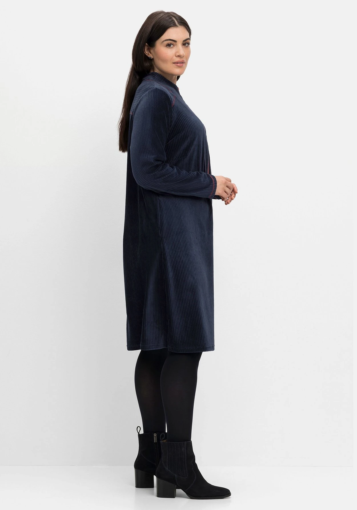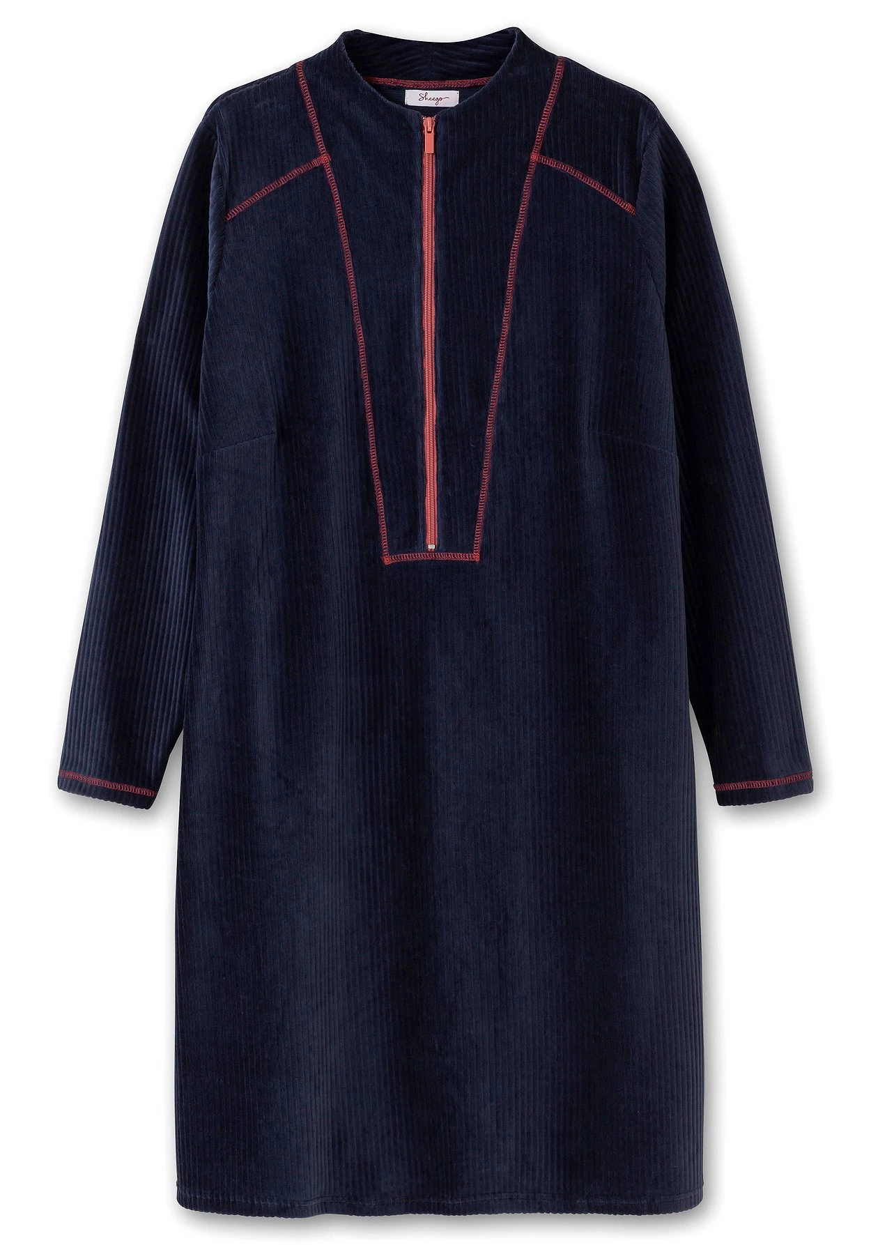 Langärmliges Shirtkleid in Cordoptik. Spannende Akzente setzen der kontrastfarbene Reißverschluss am Ausschnitt sowie die kontrastfarbenen Nähte. In die Seiten sind Eingrifftaschen eingefasst, am geraden Saum sorgen Seitenschlitze für Bewegungsfreiheit.