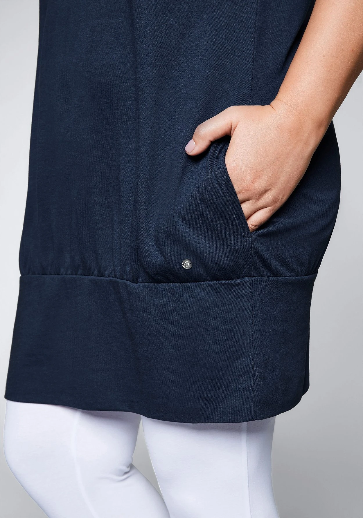 Lässig, leicht und super bequem! Dieses Shirtkleid ist der perfekte Kombipartner für Freizeit und Urlaub. Die kurzen Ärmel sind modisch überschnitten und mit einem Umschlag versehen. Die seitlichen Eingrifftaschen und der breite Saum unterstreichen die lässig-sportive Optik.