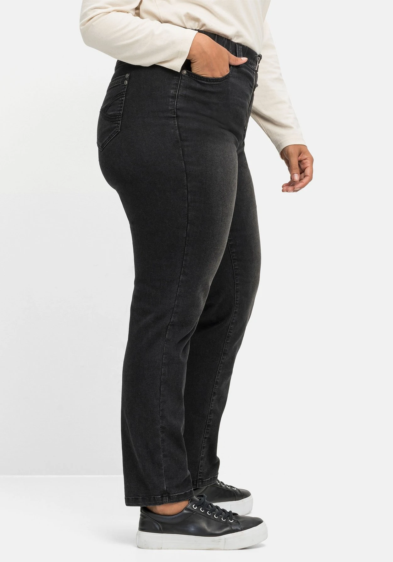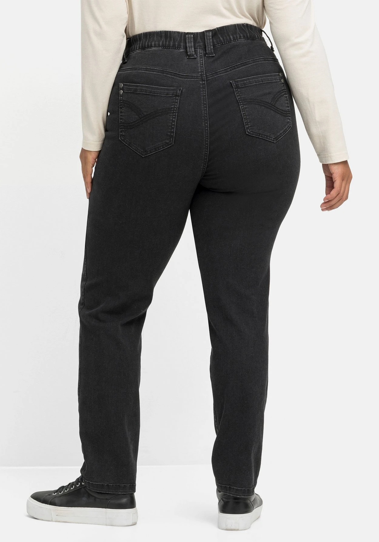 Die superelastische Denimqualität aus Baumwollmix passt sich der Figur perfekt an, ist sehr stabil und trägt sich unglaublich bequem. Mit dem Kauf dieses Produkts unterstützt du außerdem die Arbeit von „Cotton made in Africa“. Die Initiative leistet Hilfe zur Selbsthilfe durch Handel und will so die Lebensbedingungen afrikanischer Kleinbauern verbessern. sheego cares!