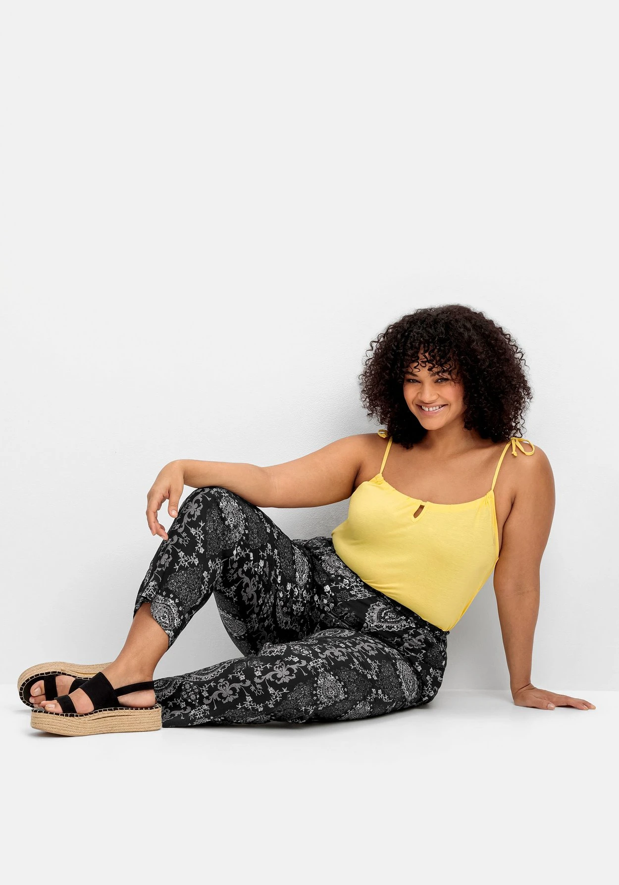 Die weich fließende Qualität aus reiner Viskose liegt kühl auf der Haut und trägt sich daher besonders angenehm. Für die Herstellung von LENZING™ ECOVERO™ Viskose werden ausschließlich zertifizierte Holzressourcen verwendet. Auch der gesamte Produktionsprozess entspricht streng den Richtlinien des EU Öko-Labels. LENZING™ und ECOVERO™ sind Marken der Lenzing AG. sheego cares!