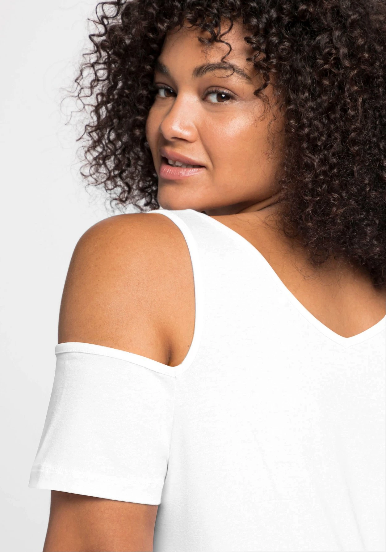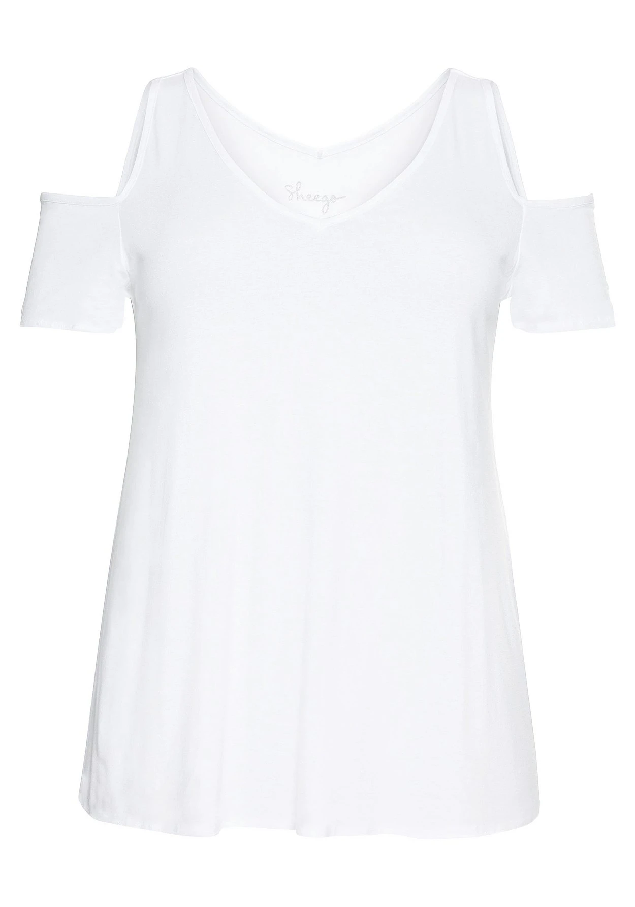 Strandshirt im Off-Shoulder-Look. Seinen sommerlich-entspannten Look verdankt das Oberteil den Cut-outs an der Schulter. Ein V-Ausschnitt vorn und hinten ist dazu eine feminine Ergänzung.
