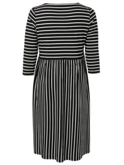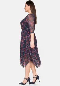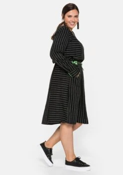 In figurumspielender Passform und kniebedeckender Länge. Das Kleid ist leicht ausgestellt geschnitten und folgt so schmeichelnd der Silhouette des A-Typs. Gleichzeitig werden die etwas breiteren Schultern des V-Typs, die geradlinige H-Silhouette sowie die stärker ausgeprägte Körpermitte des O-Typs optimal ausgeglichen.