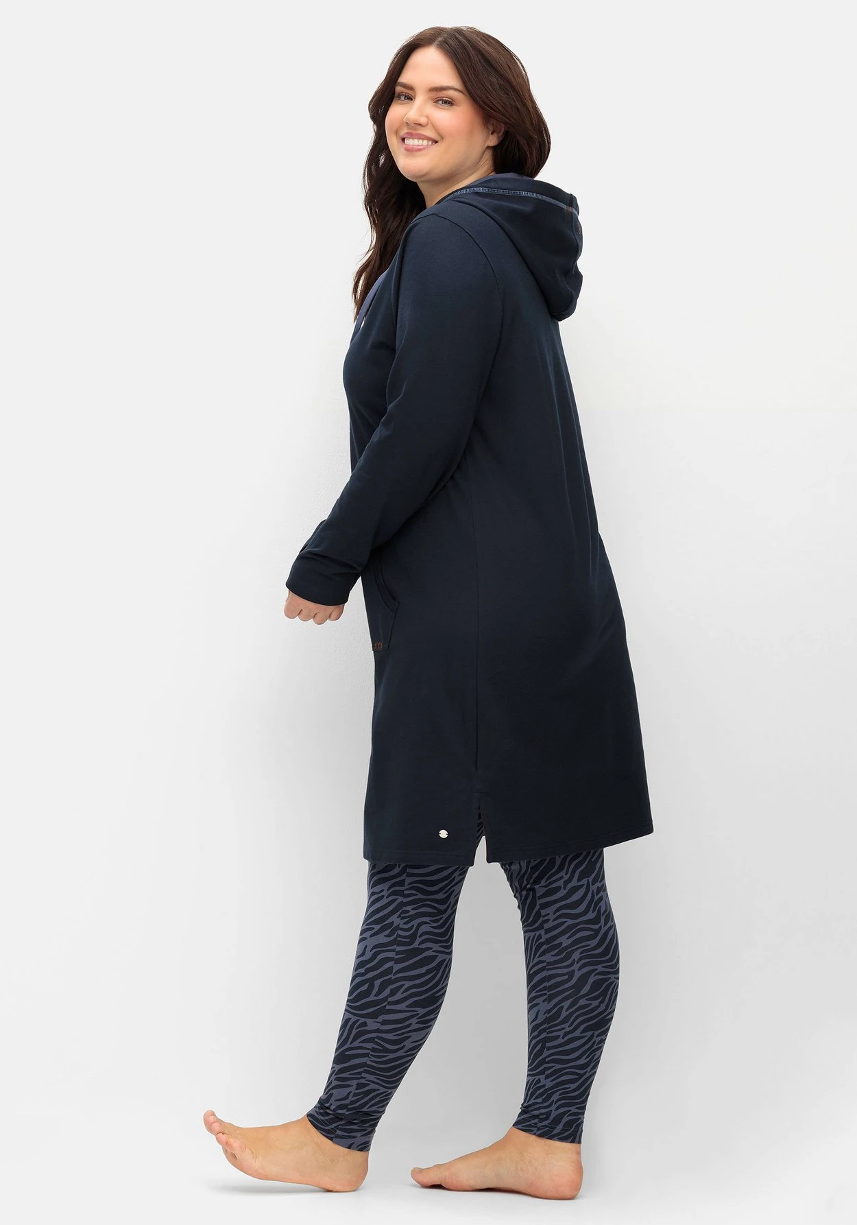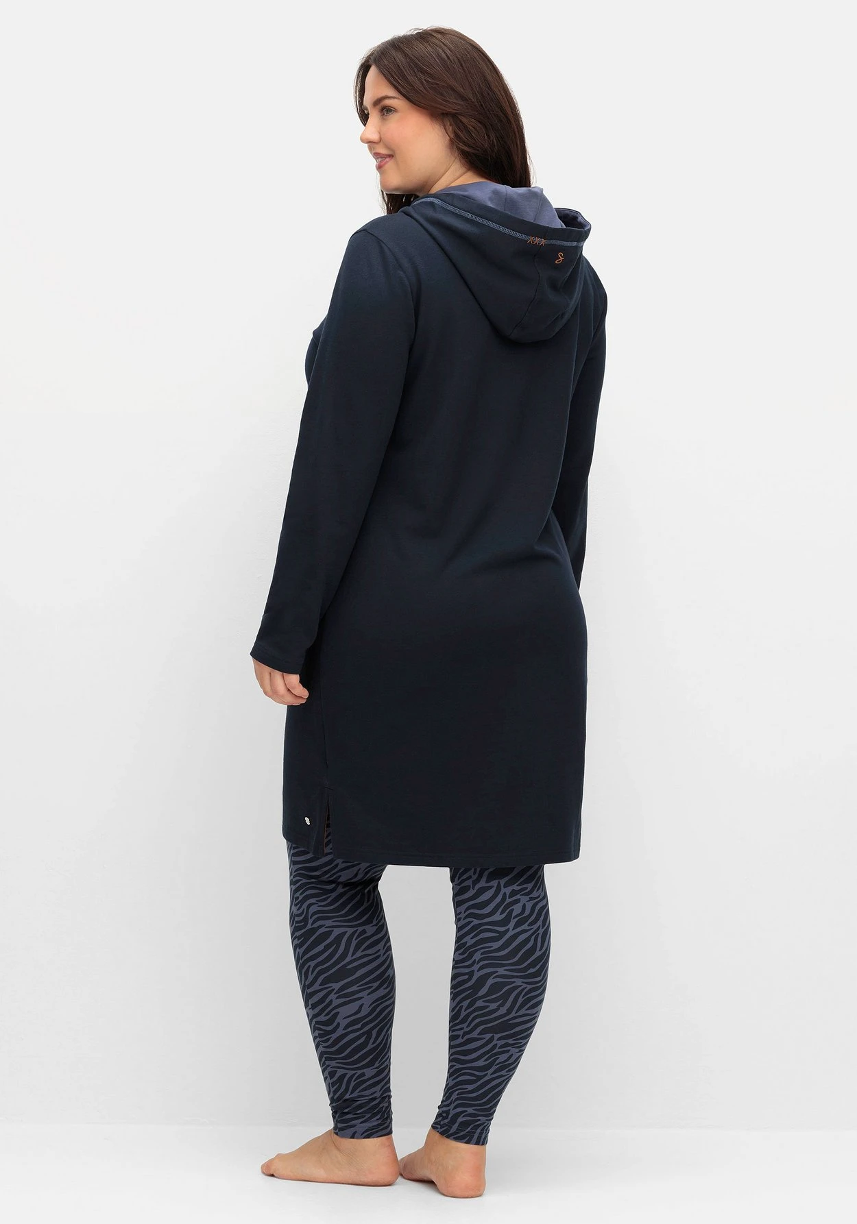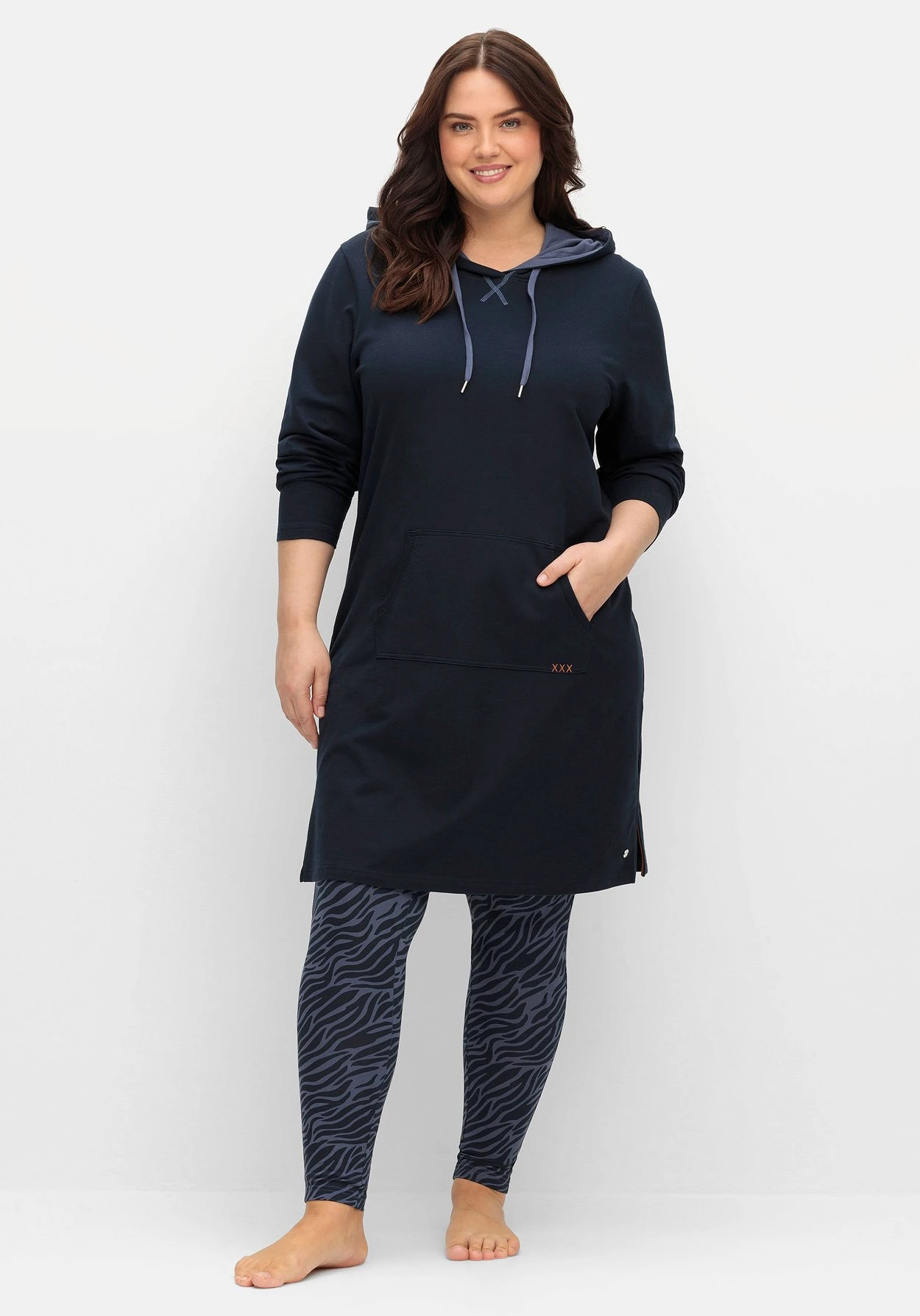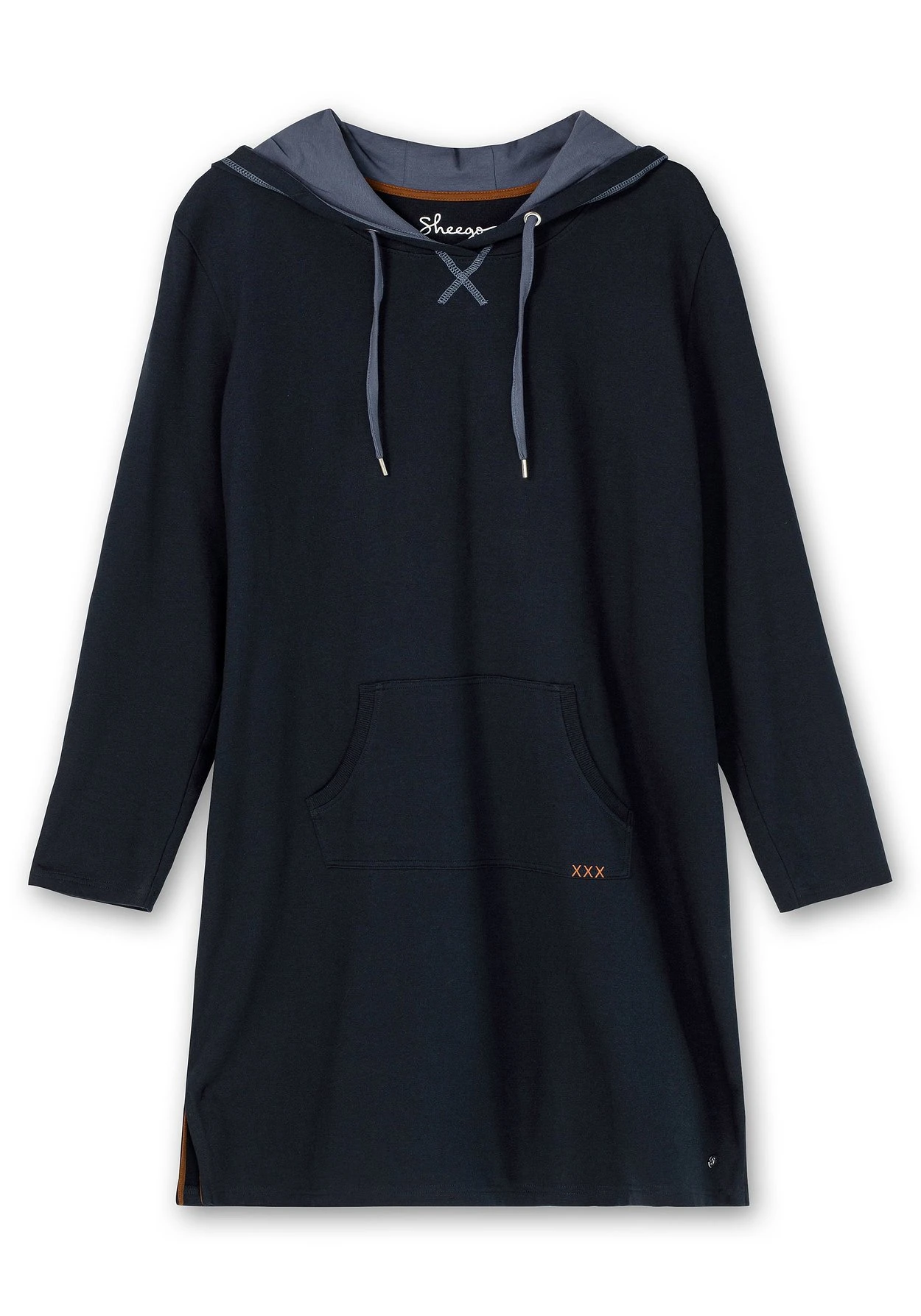 Bequemes Sweatkleid zum Relaxen. Die Kapuze wird durch Kontrastfutter betont, die Kängurutasche unterstreicht den lässig-sportiven Look. Kleine Stickereien und Kontrastnähte setzen farbliche Akzente. Seitliche Schlitze am Saum dienen der Bequemlichkeit.