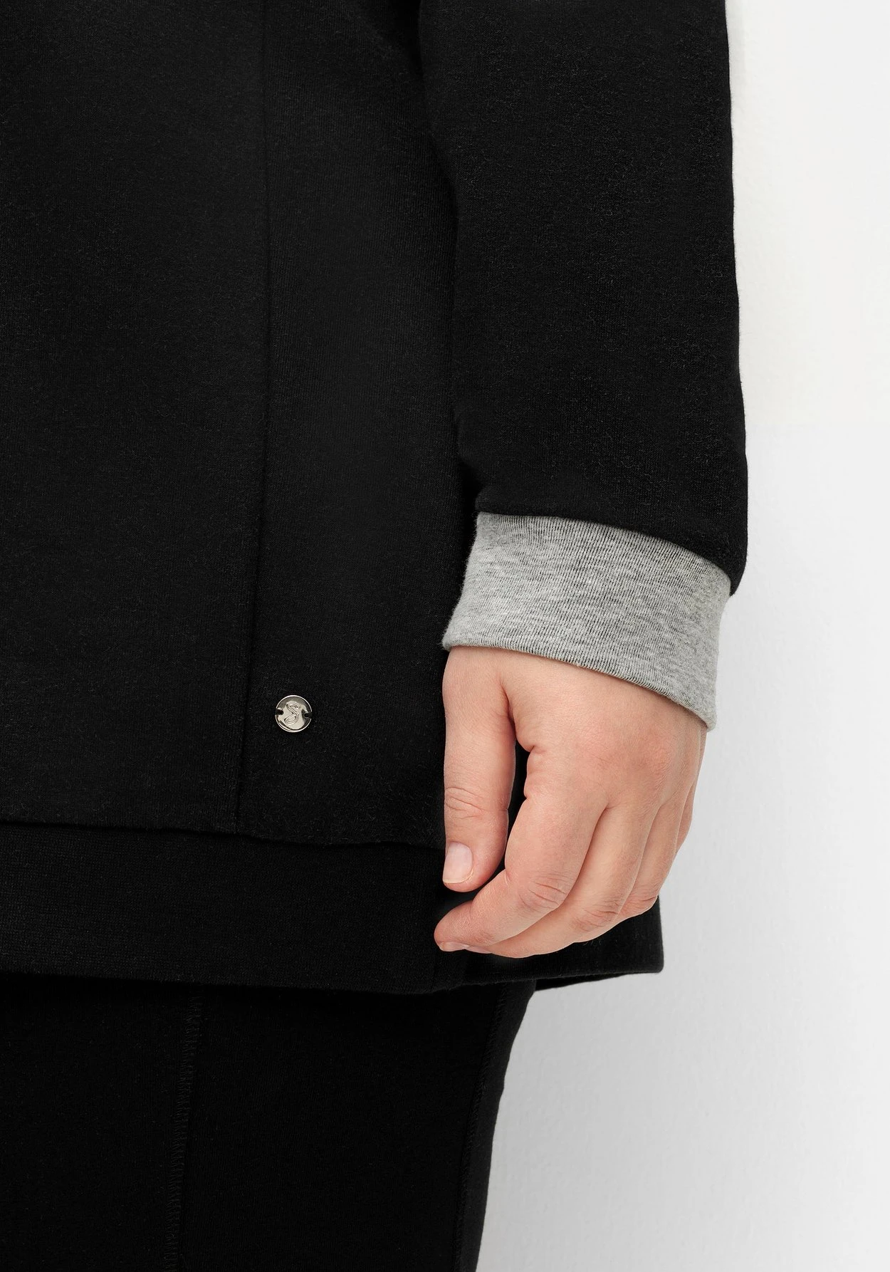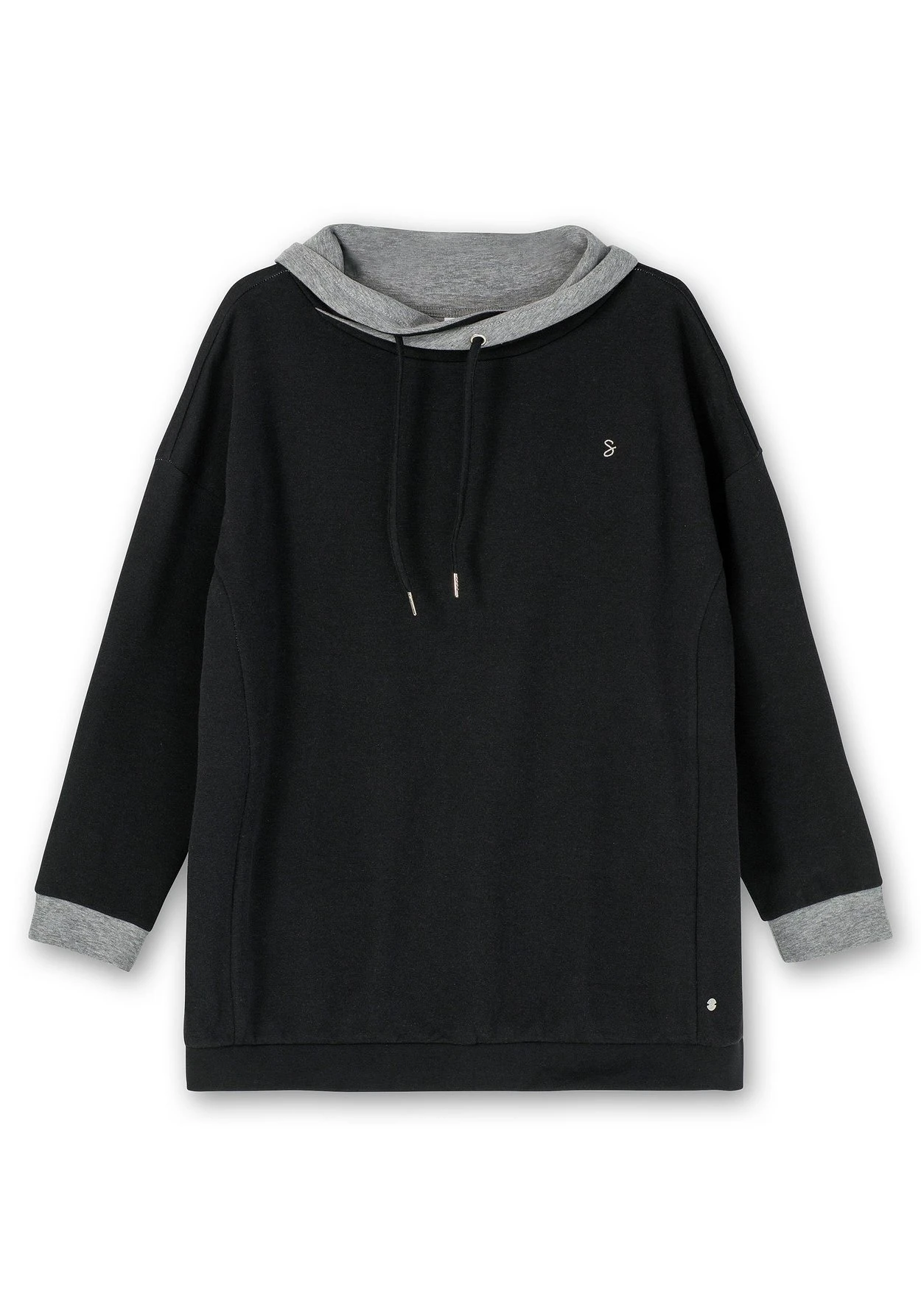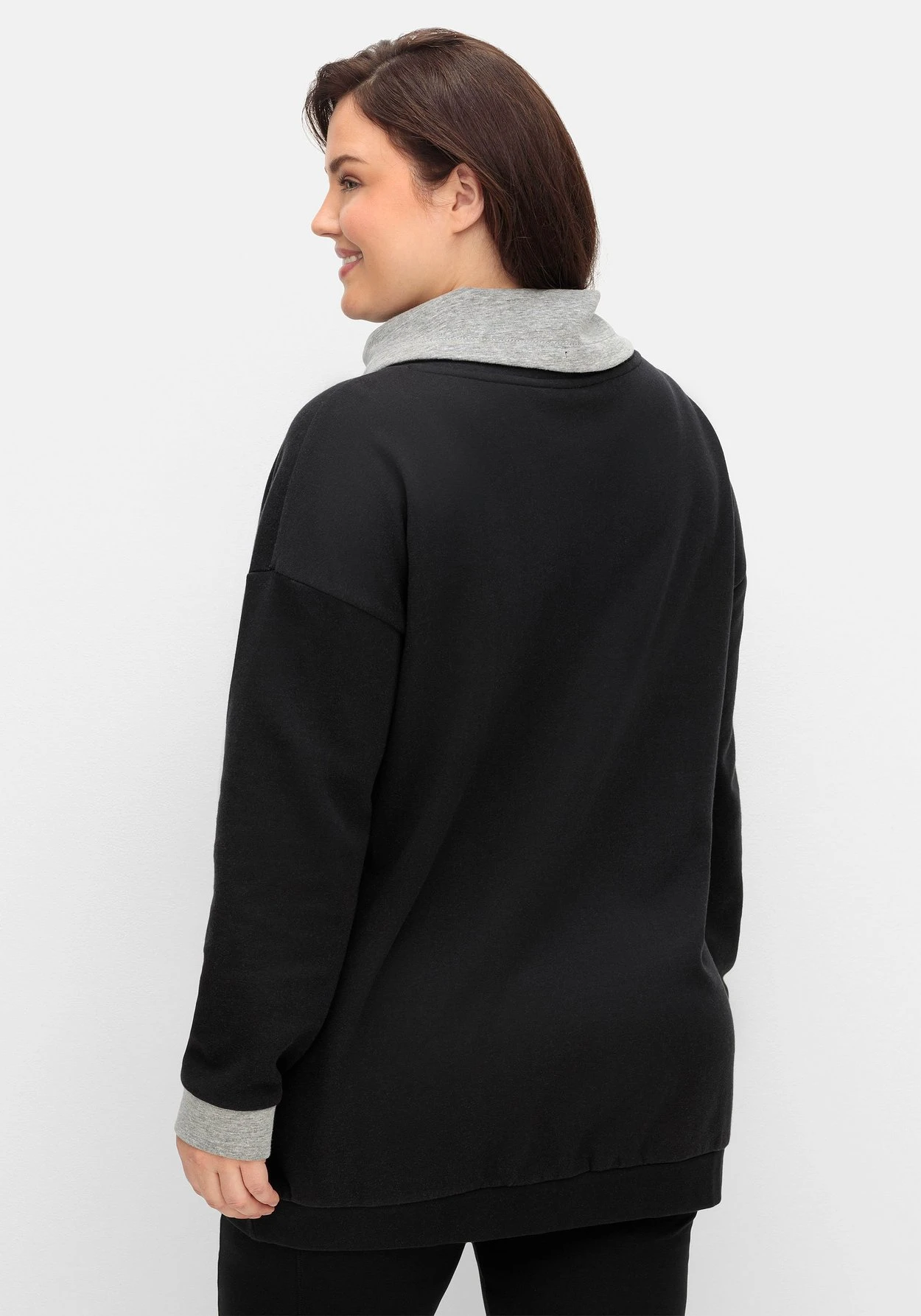 Sweatshirt in bequemer Longform mit weitem Umlegekragen und Bindeband. Für den modernen Look sorgt die Double-Face-Verarbeitung mit kontrastfarbener Innenseite und kontrastfarbenen, elastischen Ärmelbündchen. Die figurschmeichelnden Teilungsnähte vorn sowie der elastische Saum ergänzen den Style.