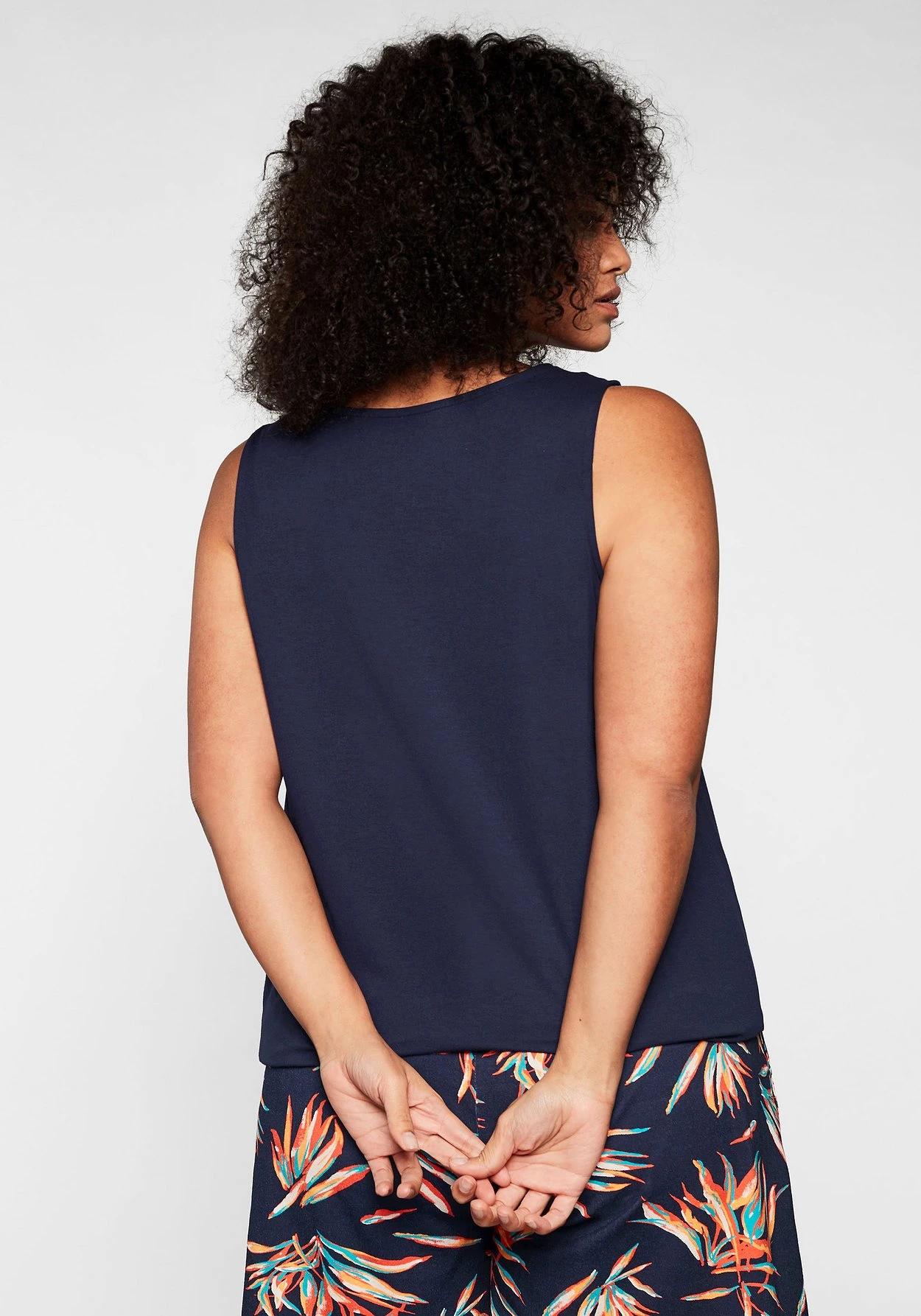 Dieses Top besteht aus einer weich fließenden Viskose-Qualität und trägt sich auch an warmen Tagen sehr angenehm.