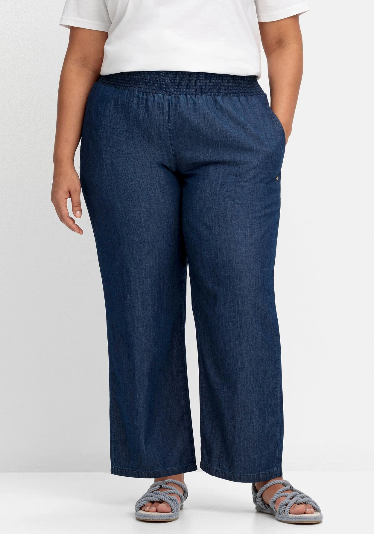 Jeans in weiter Beinform. Die locker sitzende Hose erhält durch den breiten Smokbund und die leichte, sommerliche Qualität ein Plus an Tragekomfort. Zwei praktische Eingrifftaschen in der Seitennaht ergänzen den lässigen Look.