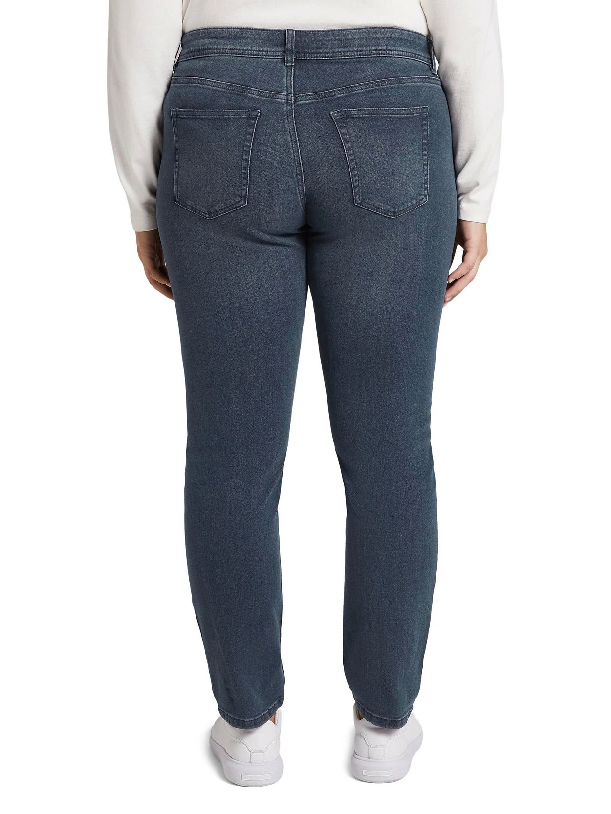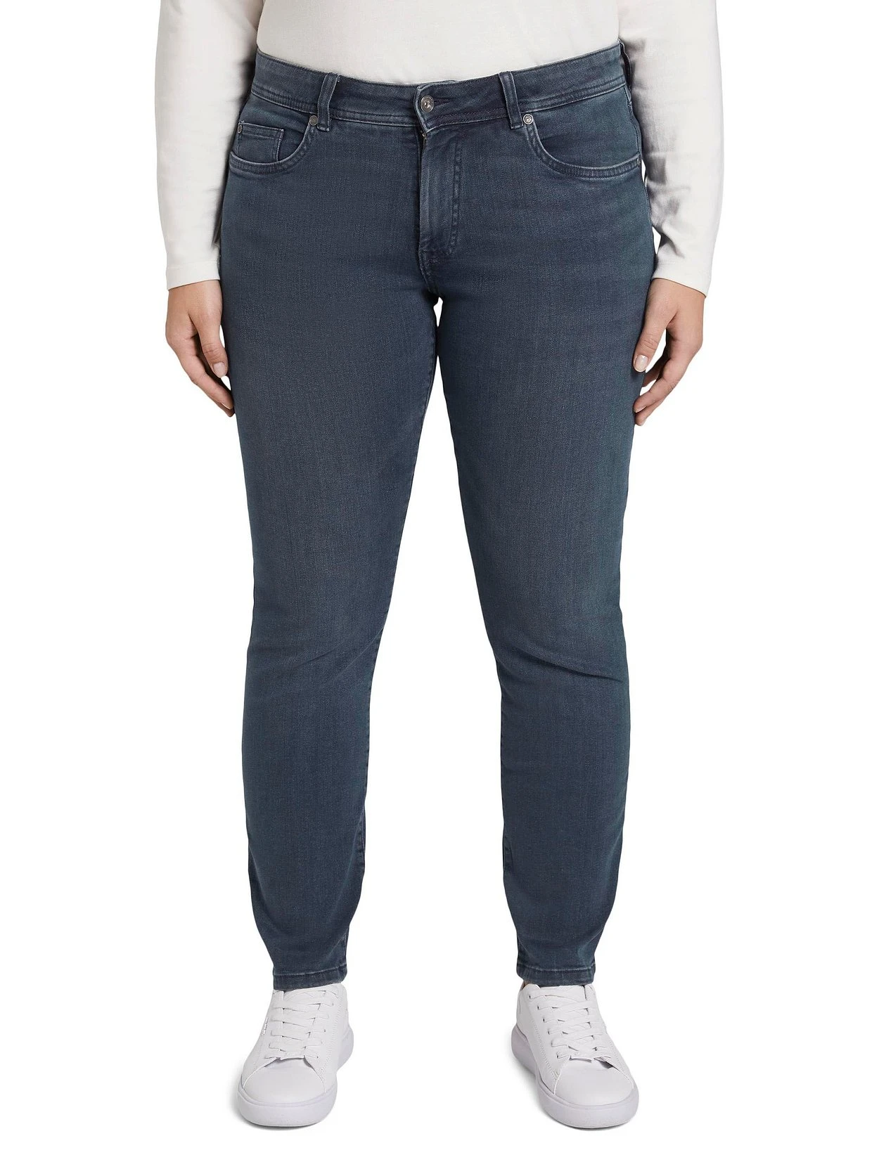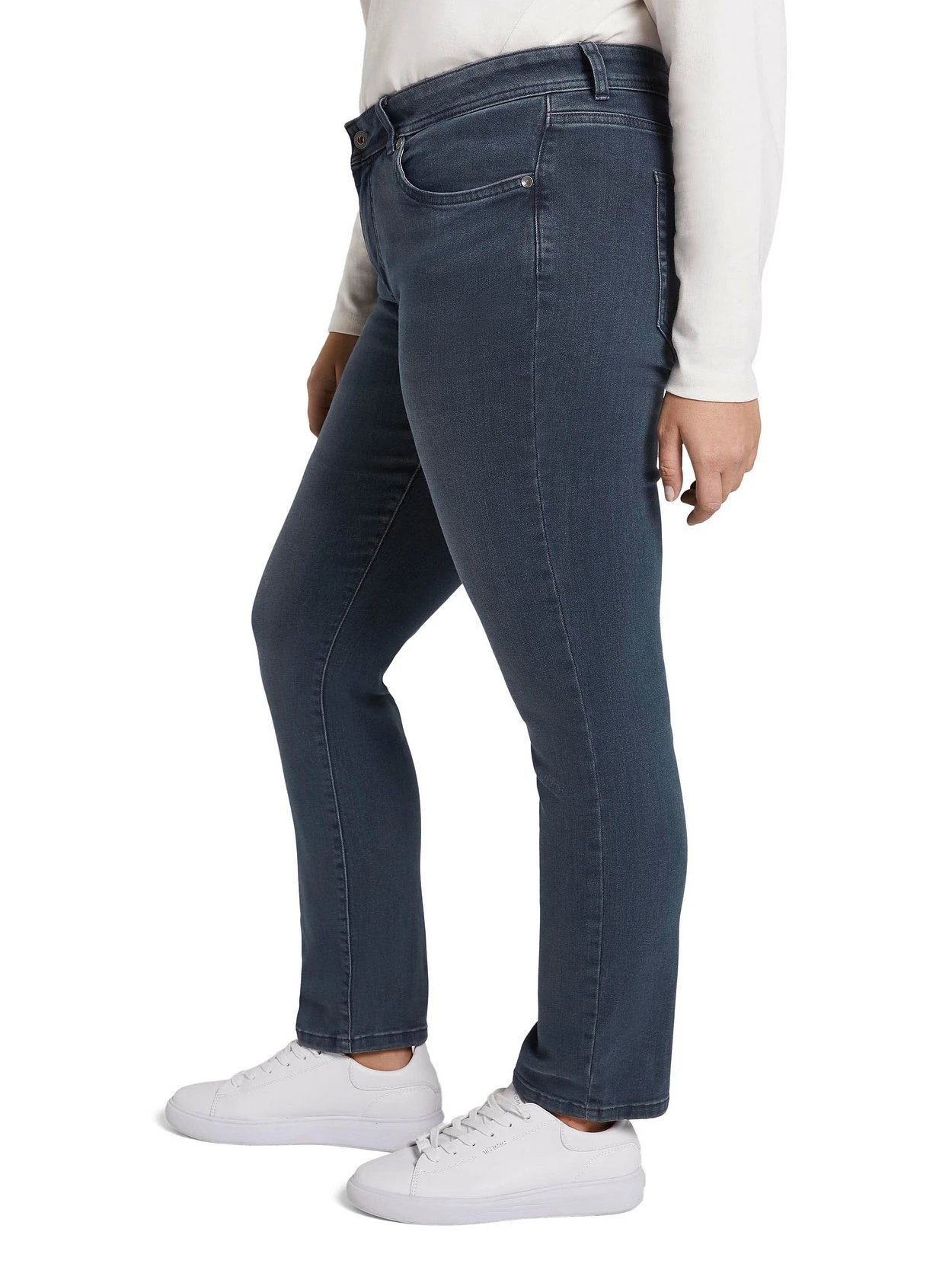 Slim Jeans von TOM TAILOR Plus. Die zeitlose Jeanshose zeigt sich klassisch mit fünf Taschen und in leichter Used-Waschung. Durch die spezielle Innenverarbeitung wird die Bauchpartie geschickt geshapt. Hinten ist die Jeans gedoppelt und sitzt daher besonders schön am Po.