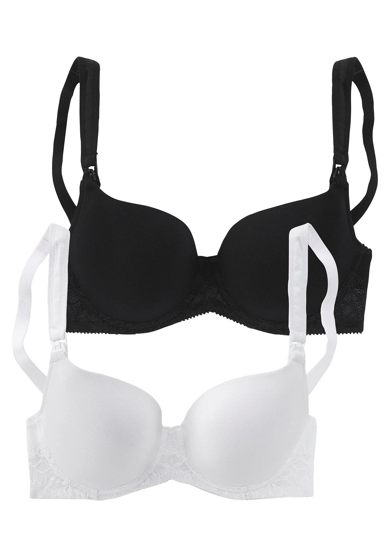 Still-BH im 2er-Pack mit eingearbeiteter Schale und nahtlosen Cups. Auf Formbügel gearbeitet. Mit zarten Spitzen-Details. Still-Clips an den Trägern für ein einfaches Öffnen der Cups. Breitere, wattierte Träger für einen angenehmen Tragekomfort. Träger und Rückenverschluss verstellbar. Aus trageangenehmer Baumwoll-Qualität. Klassische Dessous. Bequeme Alltags-Dessous. Modische Dessous. Aus 82%Baumwolle, 13% Polyamid, 5% Elasthan.