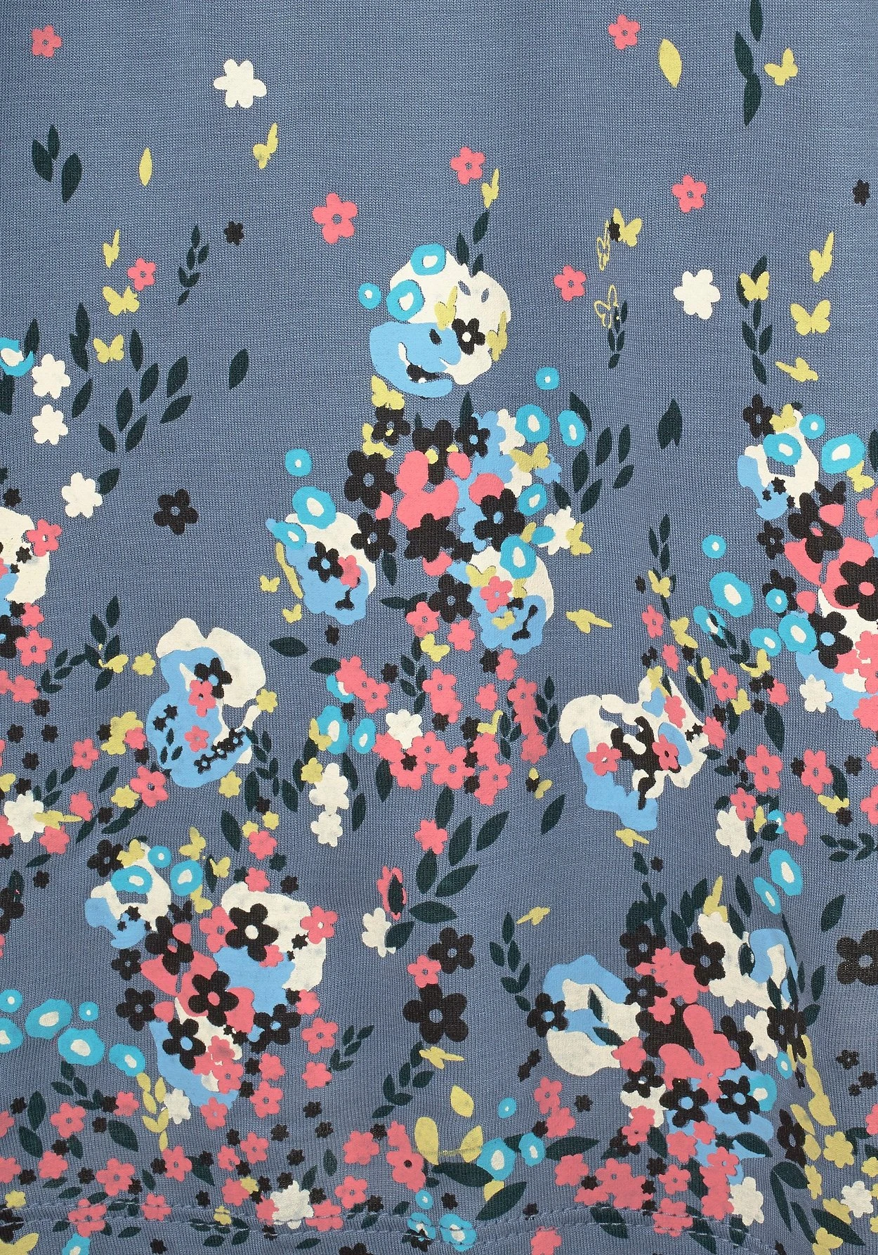Strandkleid in Hängerchenform mit eingelten Falten unterhalb der Brust und rundum bedrucktem Rockteil. Länge ca. 90 cm. Weich fließende Qualität aus 100% Viskose.