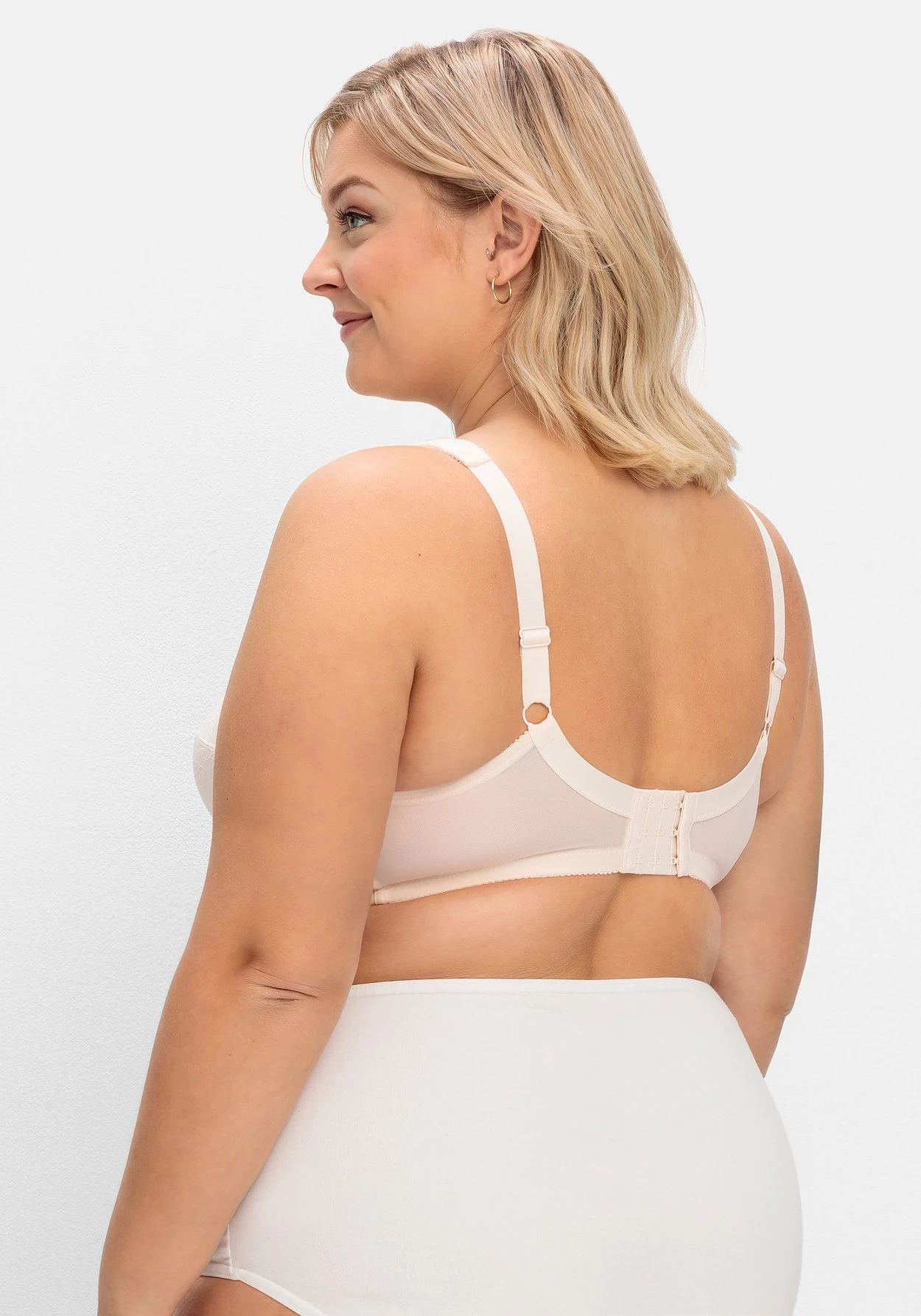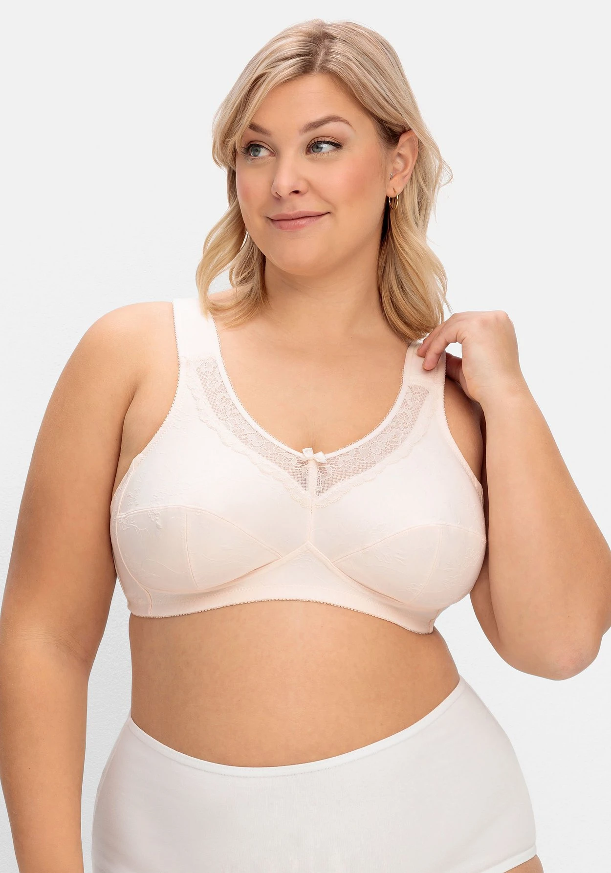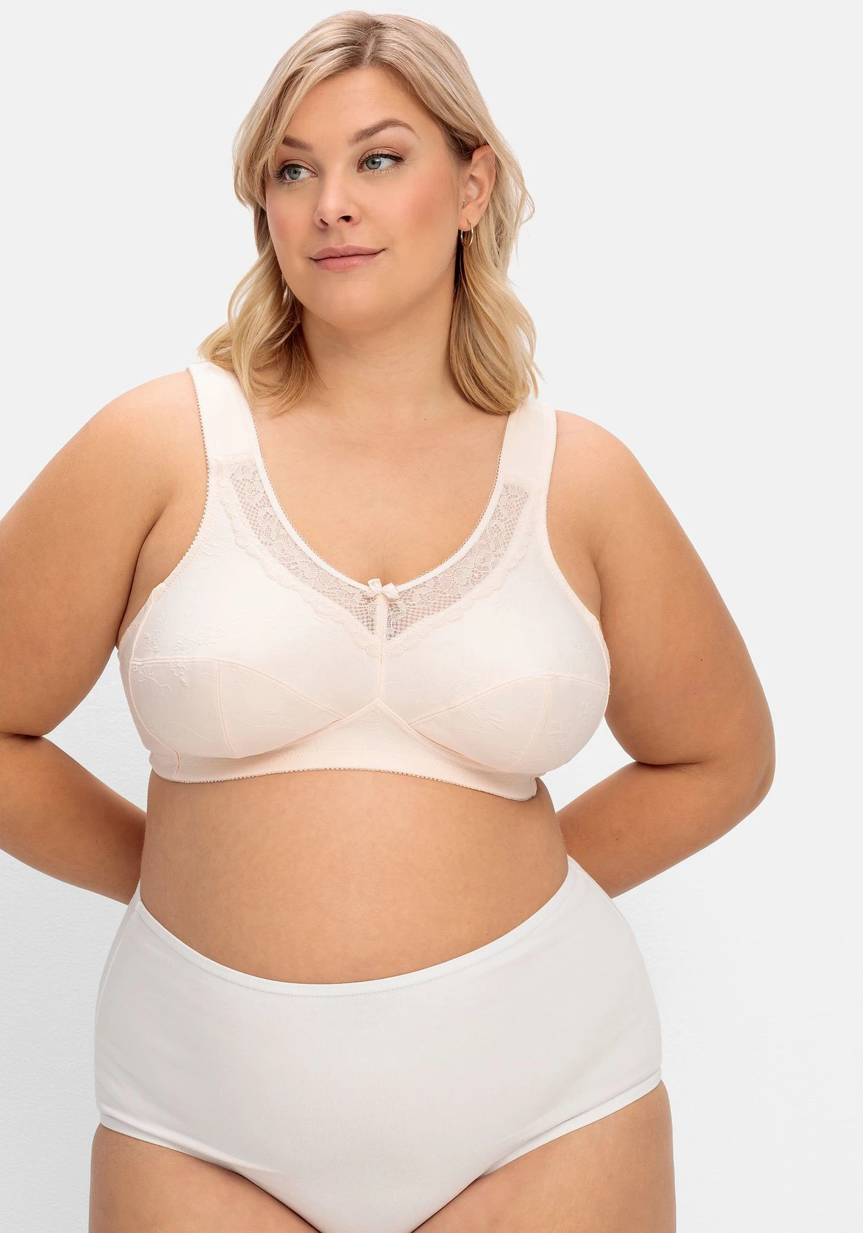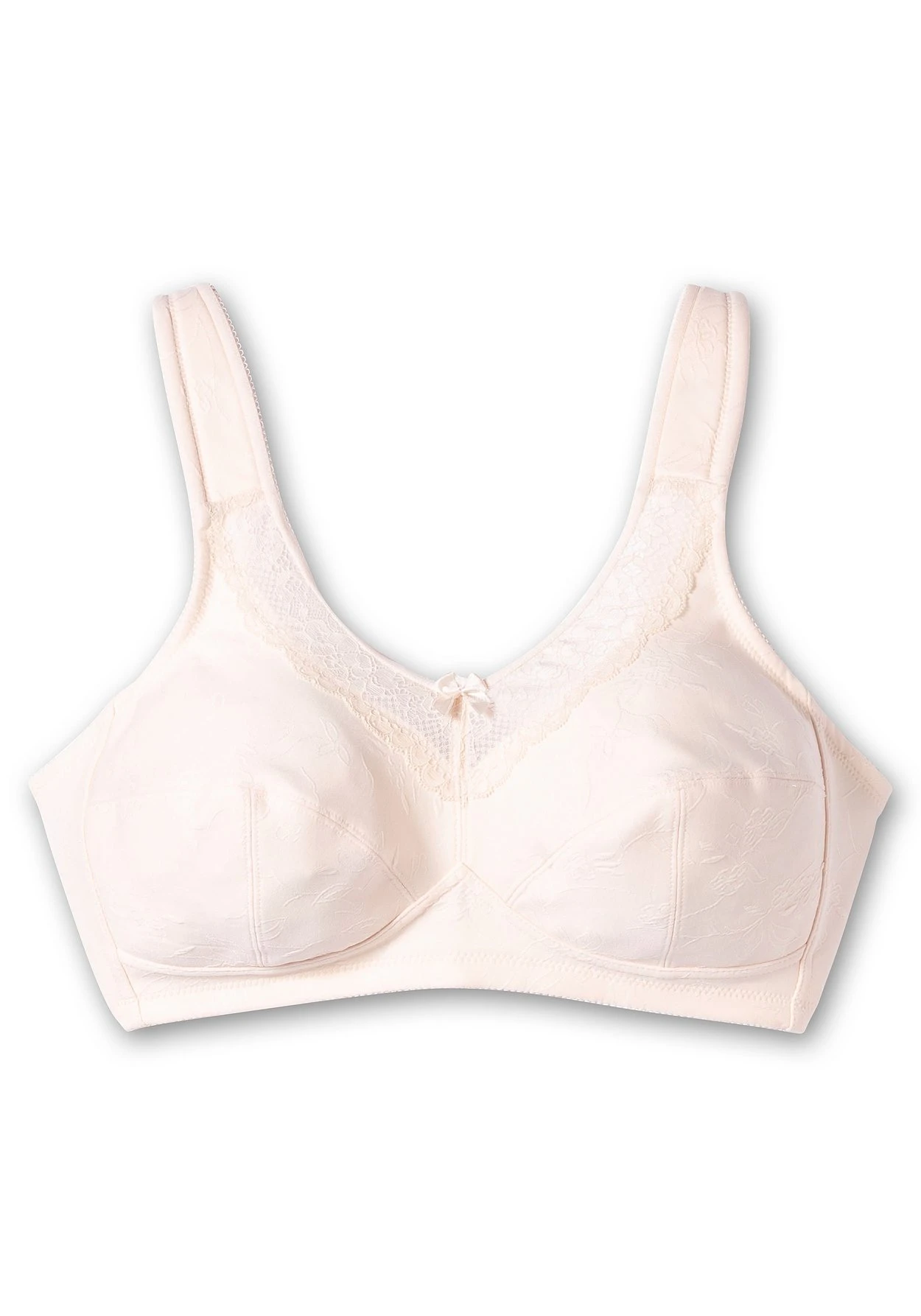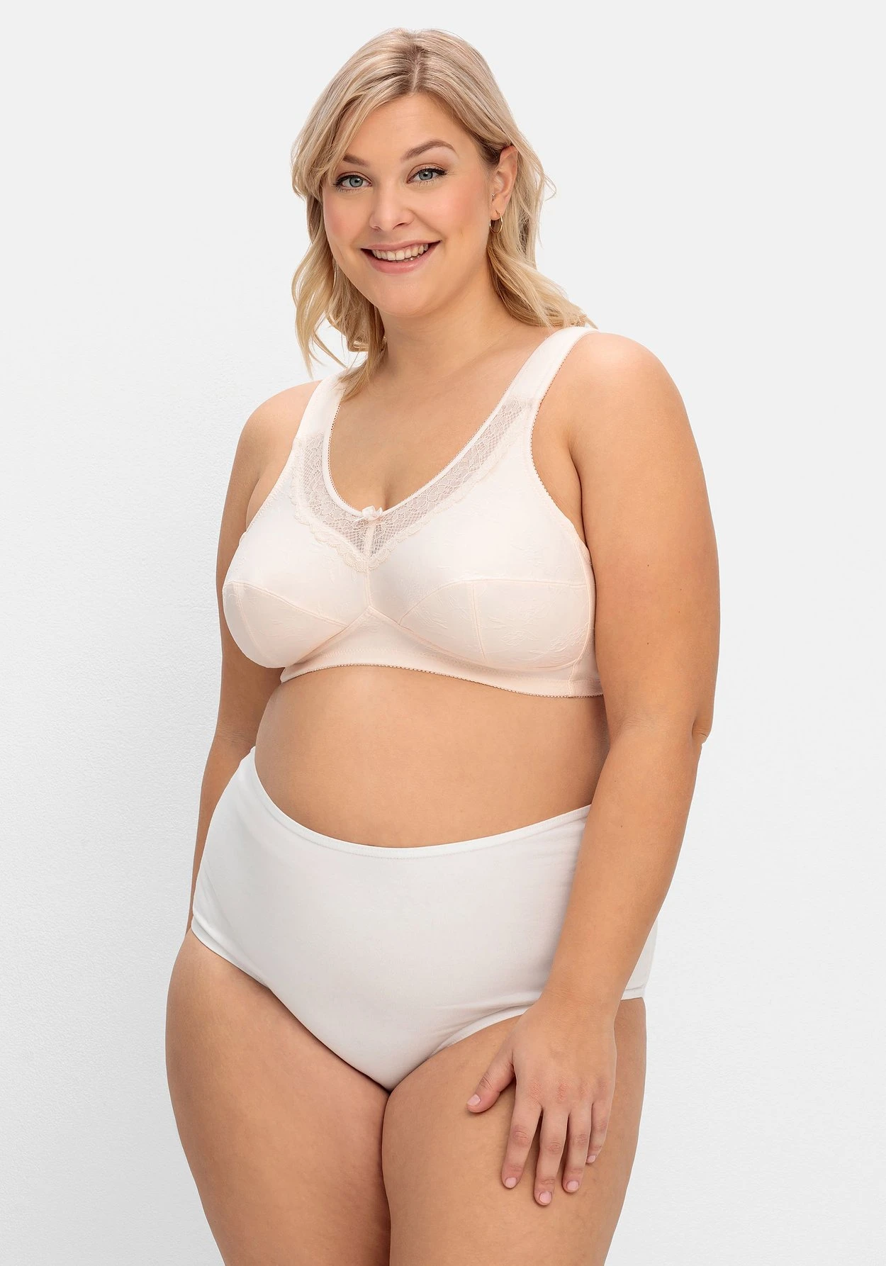 Entlastungs-BH ohne Bügel von Susa Comfort. Der Einsatz aus leicht transparenter Spitze gibt dem BH eine feminine Optik. Dazu überzeugt die genähte, dreiteilige Schnittführung mit hohem Tragekomfort, die extrabreiten längenverstellbaren Träger schneiden nicht ein und stützen optimal die Brust. Der Rückenverschluss ist mit Haken verstellbar.