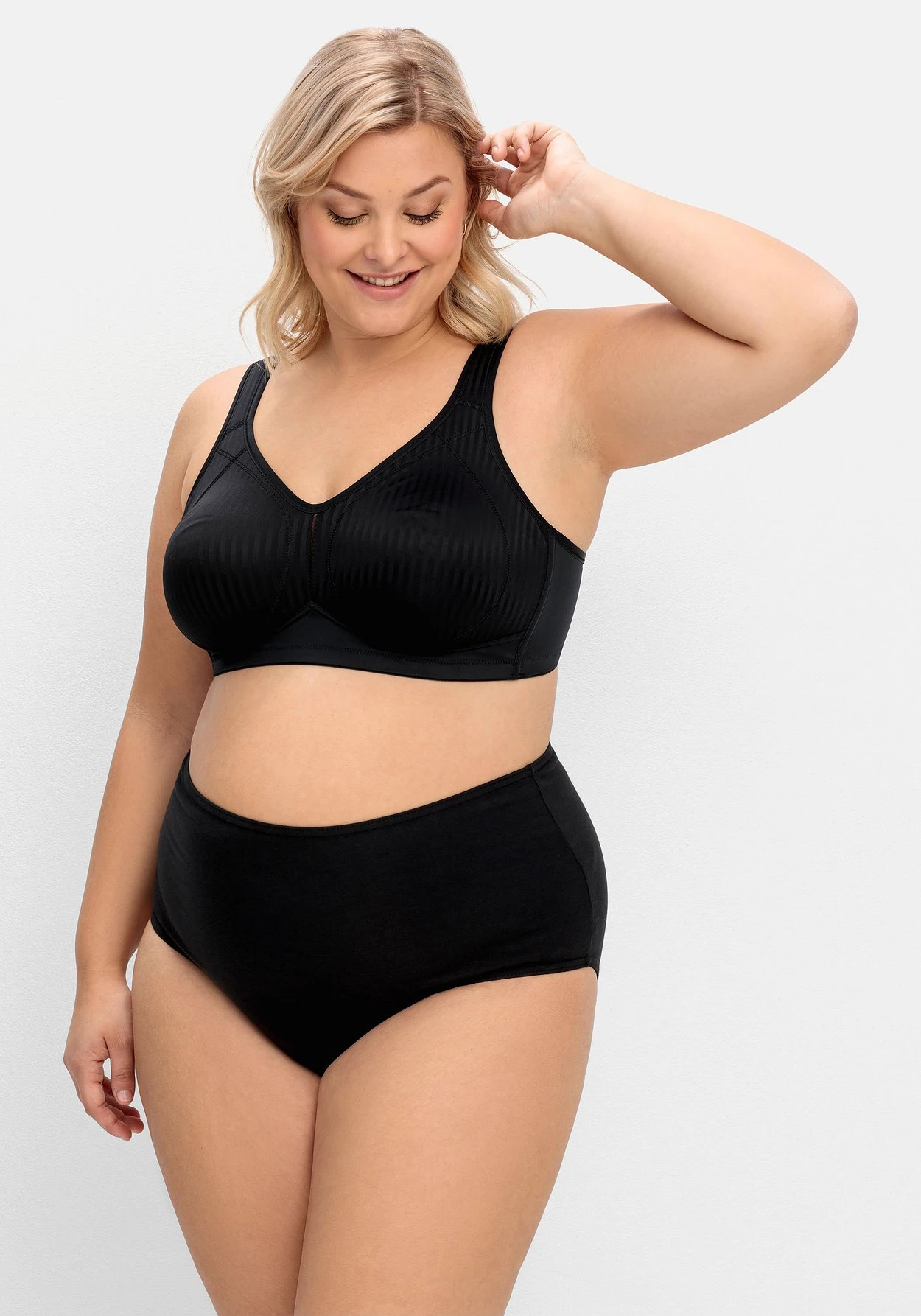 Entlastungs-BH ohne Bügel von Susa Comfort. Das Dessin erhält durch den Mix aus matten und glänzenden Streifen eine moderne Optik. Die breiteren wattierten Träger schneiden nicht ein und entlasten die Schultern. Nahtlos vorgeformte Cups sorgen für eine perfekte Passform, die Stützblenden geben optimalen Halt.