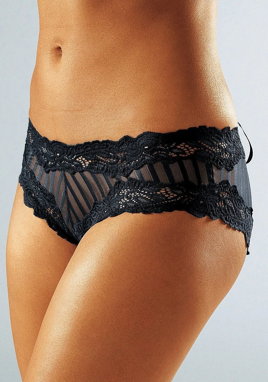Petite Fleur Gold Tangaslip mit raffinierter Schnürung hinten und Spitze am Beinausschnitt. Mit eingearbeiteten Baumwollzwickel. Aus 90% Polyamid und 10% Elasthan.