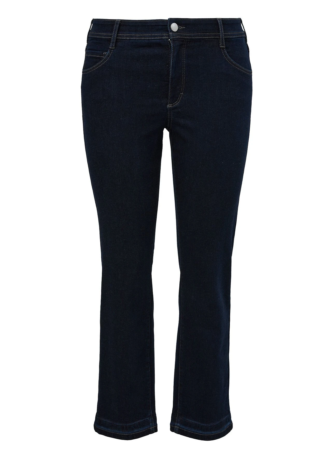 Gerade Stretchjeans von s.Oliver. Der cleane, dunkle Denim wird lediglich mit Kontrastnähten modisch betont. Trendgerecht und praktisch zugleich ist die Five-Pocket-Form, geschlossen wird die Hose mit Knopf und verdecktem Reißverschluss.