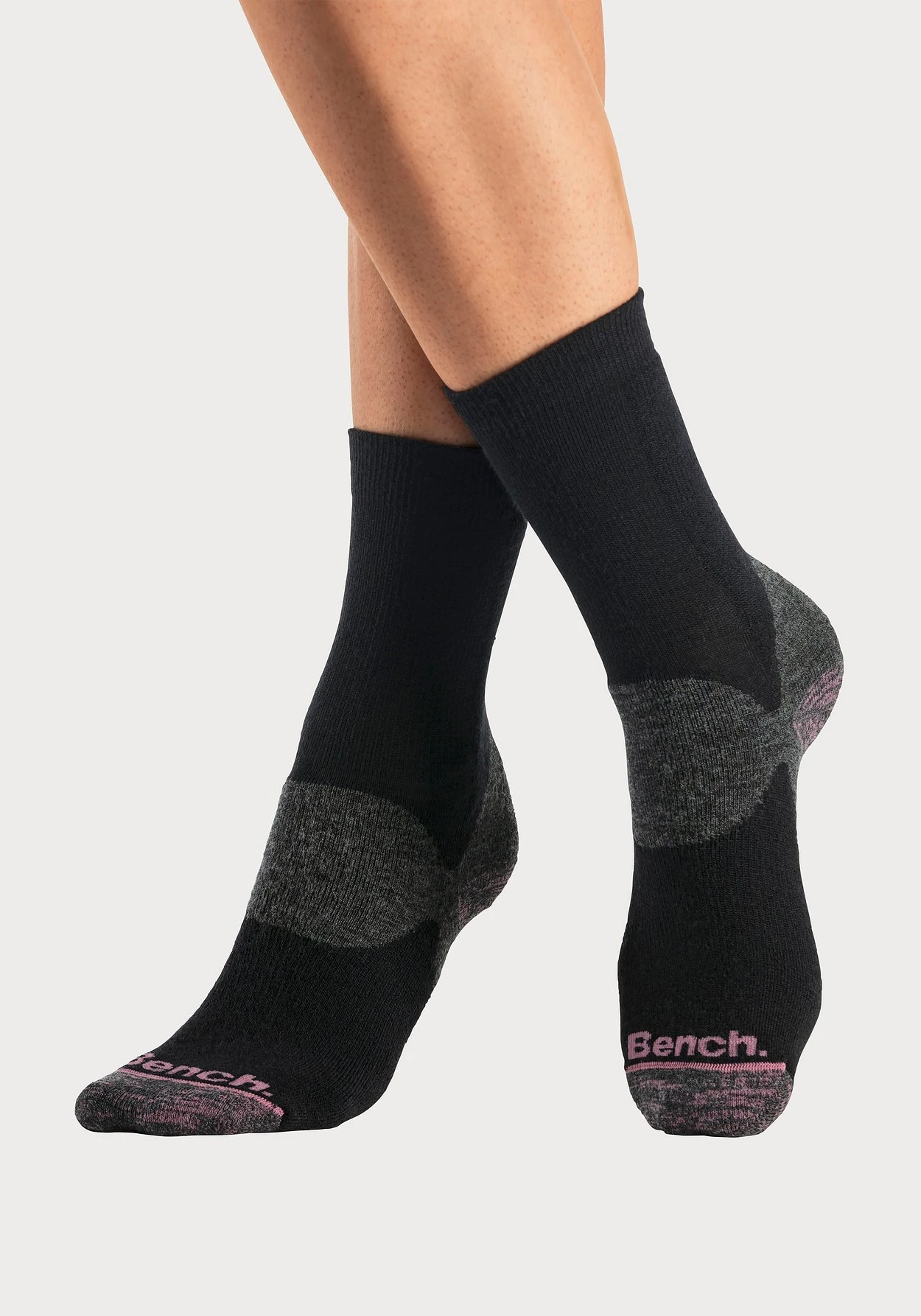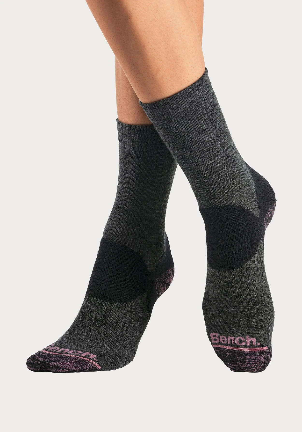 Gemütliche Trekkingsocken mit Wolle im 2er-Pack von Bench. Frottee um den gesamten Fuß und die hintere Seite des Schaftes für mehr Schutz vor Kälte. Temperaturausgleichend dank Wollanteil. Weiche Qualität.